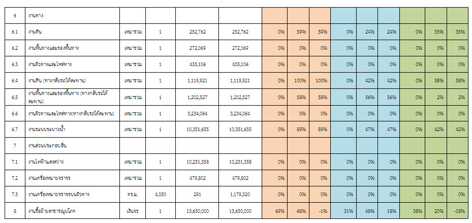 2.2 ความก้าวหน้าของงานก่อสร้างแยกตามรายการ