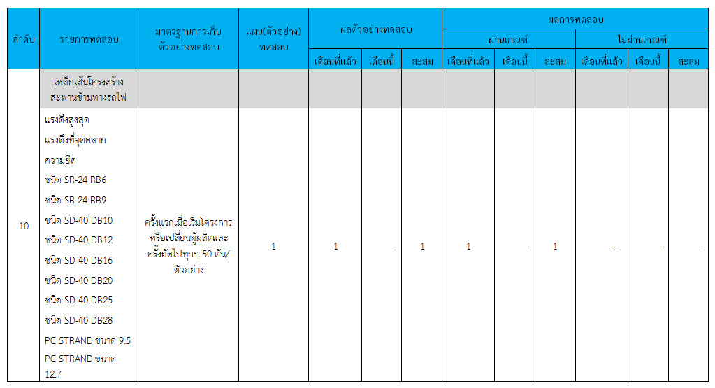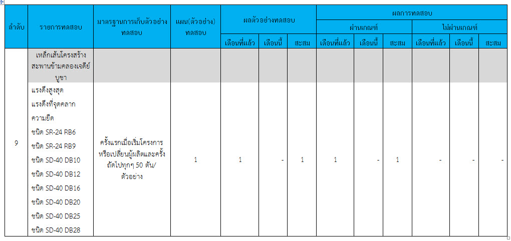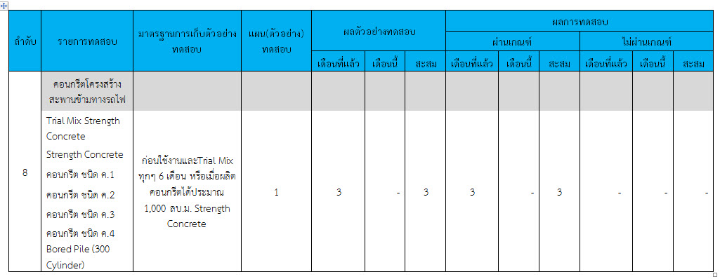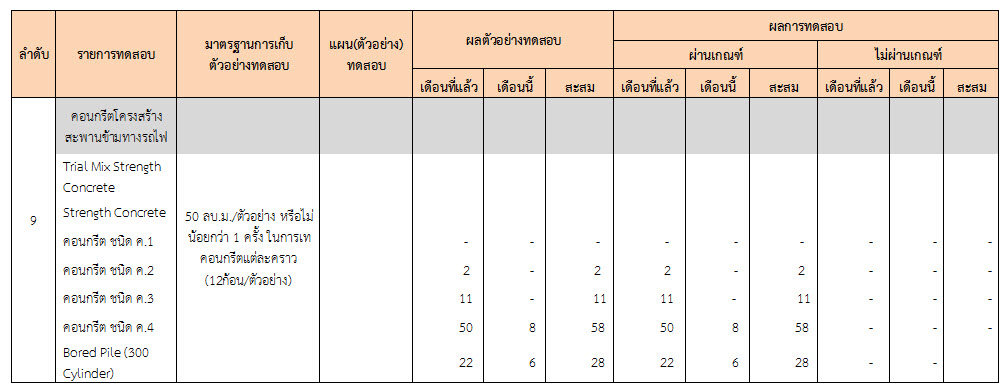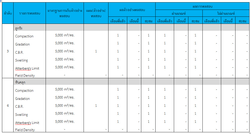 ในระหว่างวันที่ 1-30 มิถุนายน 2560 ผู้ว่าจ้างได้เสนอหนังสือขออนุมัติใช้วัสดุถึงที่ปรึกษา โดยที่ปรึกษาได้ตรวจสอบวัสดุดังกล่าวมีผลทดสอบดังตาราง