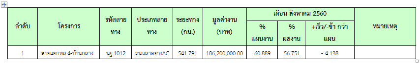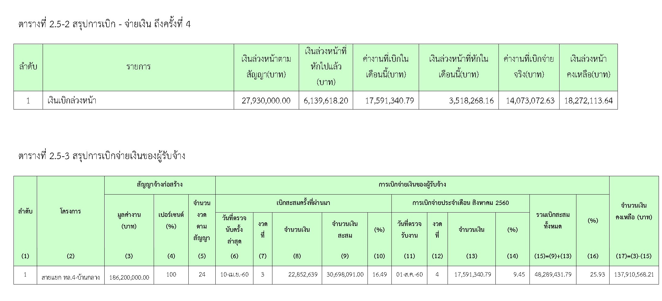 คณะกรรมการตรวจการจ้าง ดำเนินการตรวจรับงานในเดือน สิงหาคม 2560 ดังสรุปในตารางที่ 2.5-1 – 2.5-4