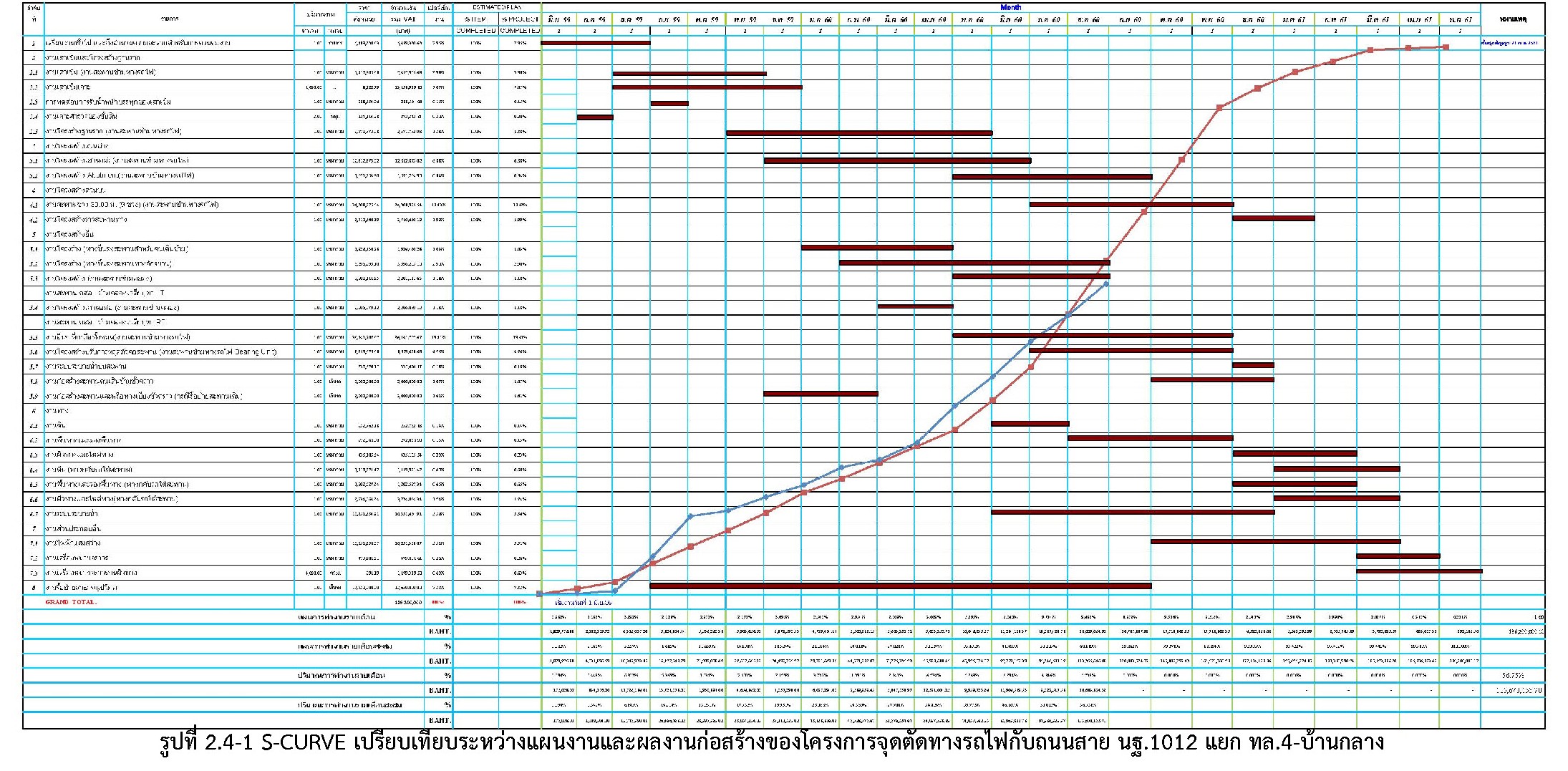ที่ปรึกษาได้ติดตามความก้าวหน้าของงาน และนำมาจัดทำเป็น S-CURVE เปรียบเทียบกันระหว่างแผนงานและผลงานก่อสร้าง ดังรูปที่ 2.2-1