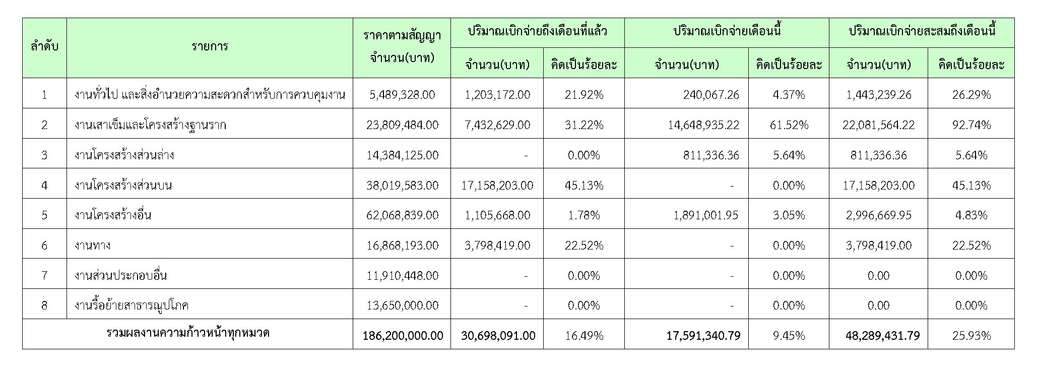 ตารางที่ 2.1-1 สรุปผลงานความก้าวหน้าของงานก่อสร้าง