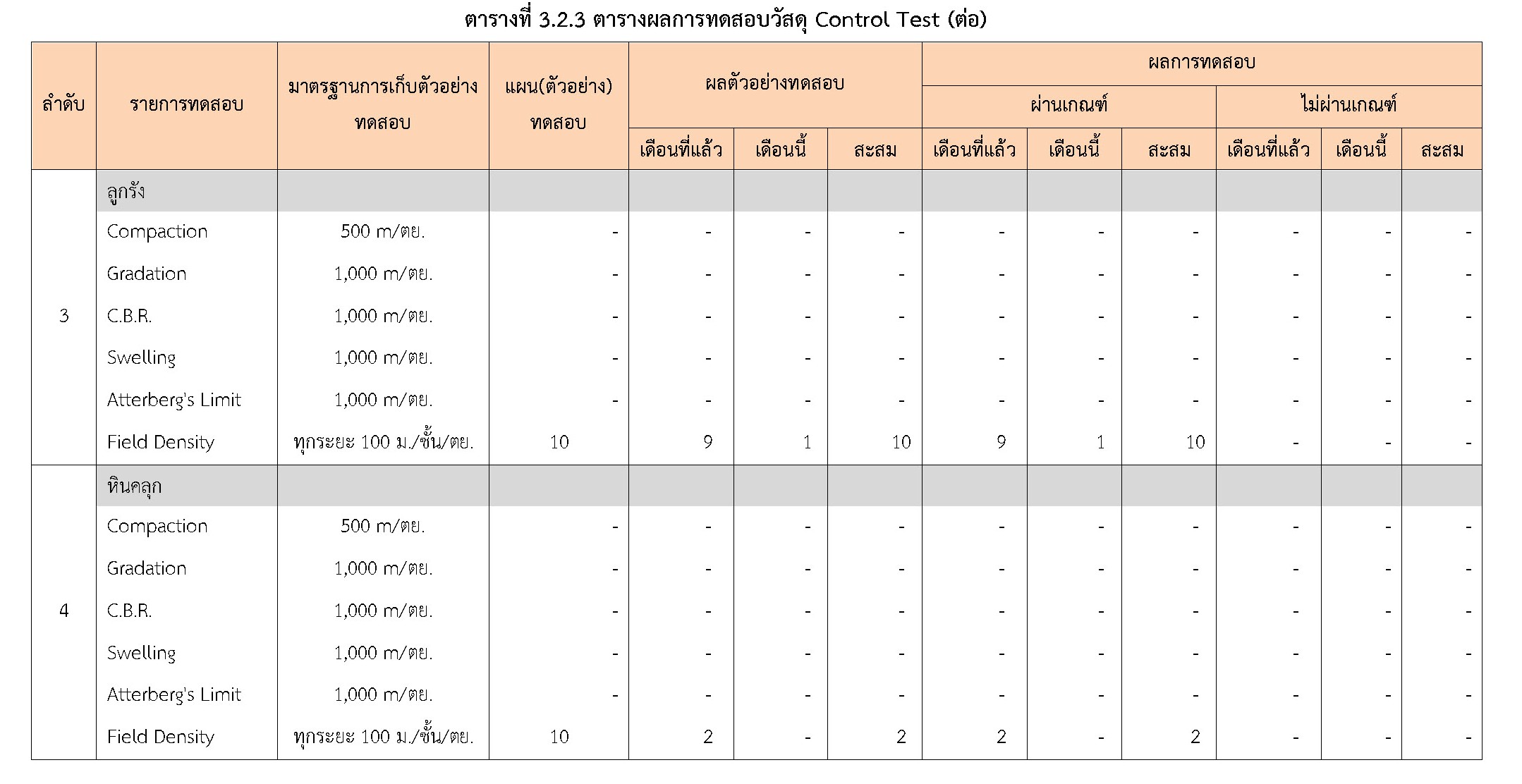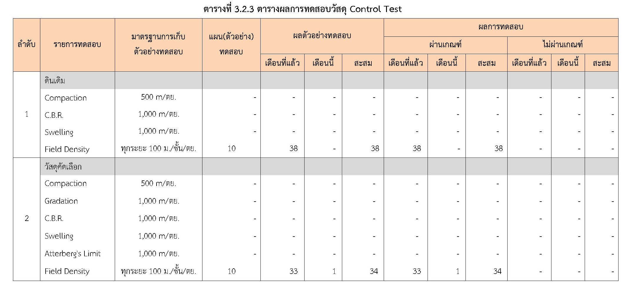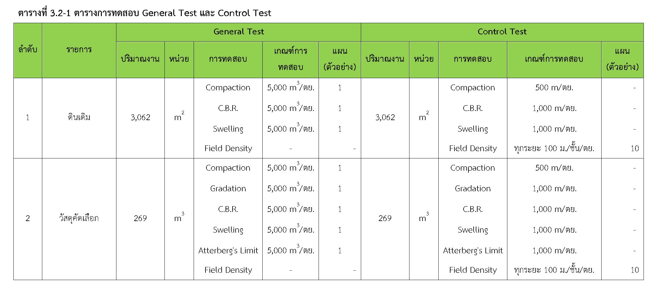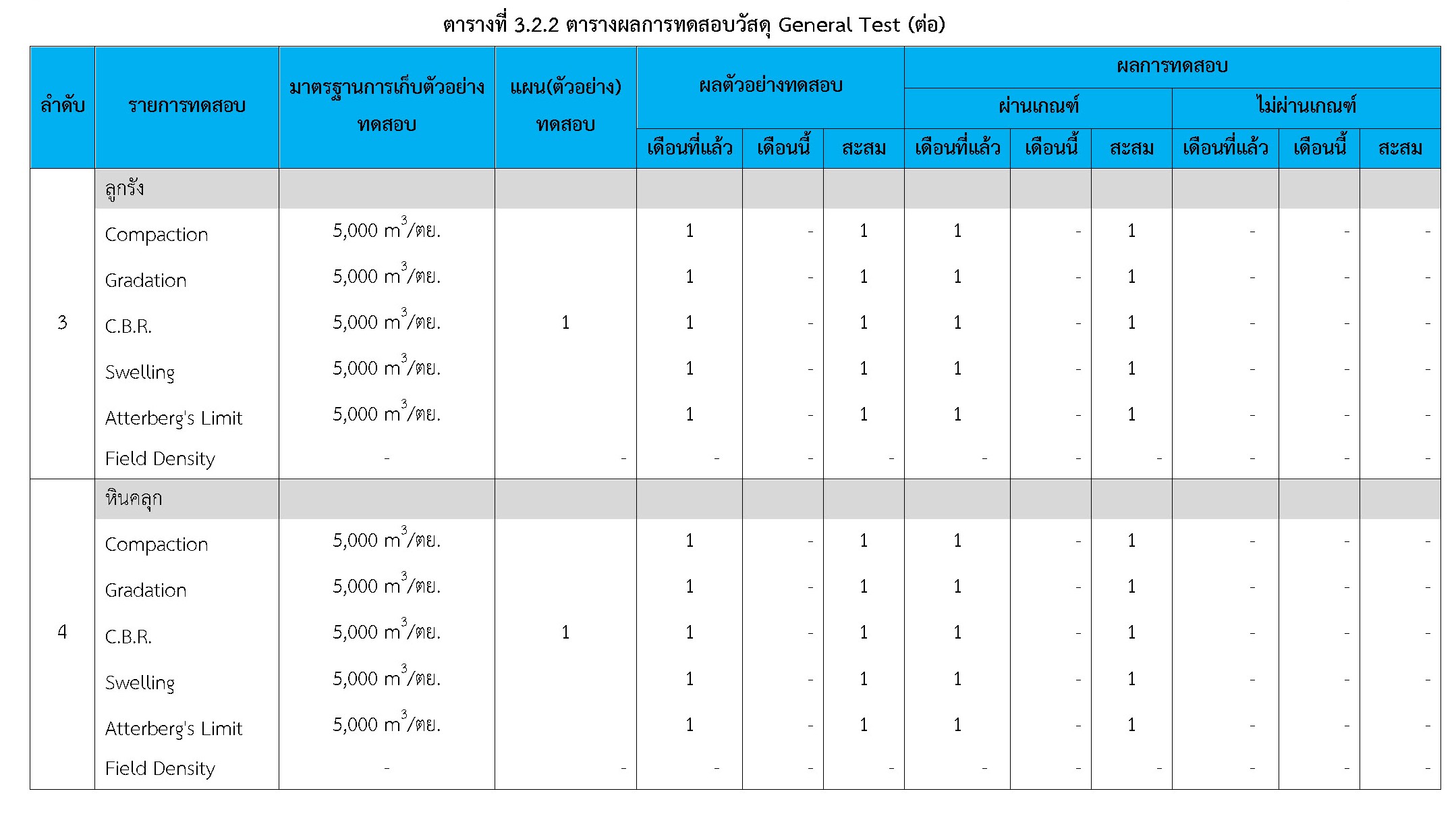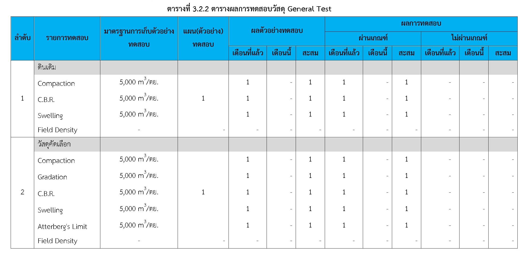ในระหว่างวันที่ 1-30 กันยายน 2560 ผู้ว่าจ้างได้เสนอหนังสือขออนุมัติใช้วัสดุถึงที่ปรึกษา โดยที่ปรึกษาได้ตรวจสอบวัสดุดังกล่าวมีผลทดสอบดังตาราง