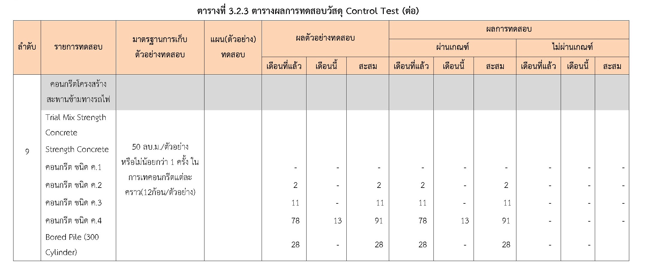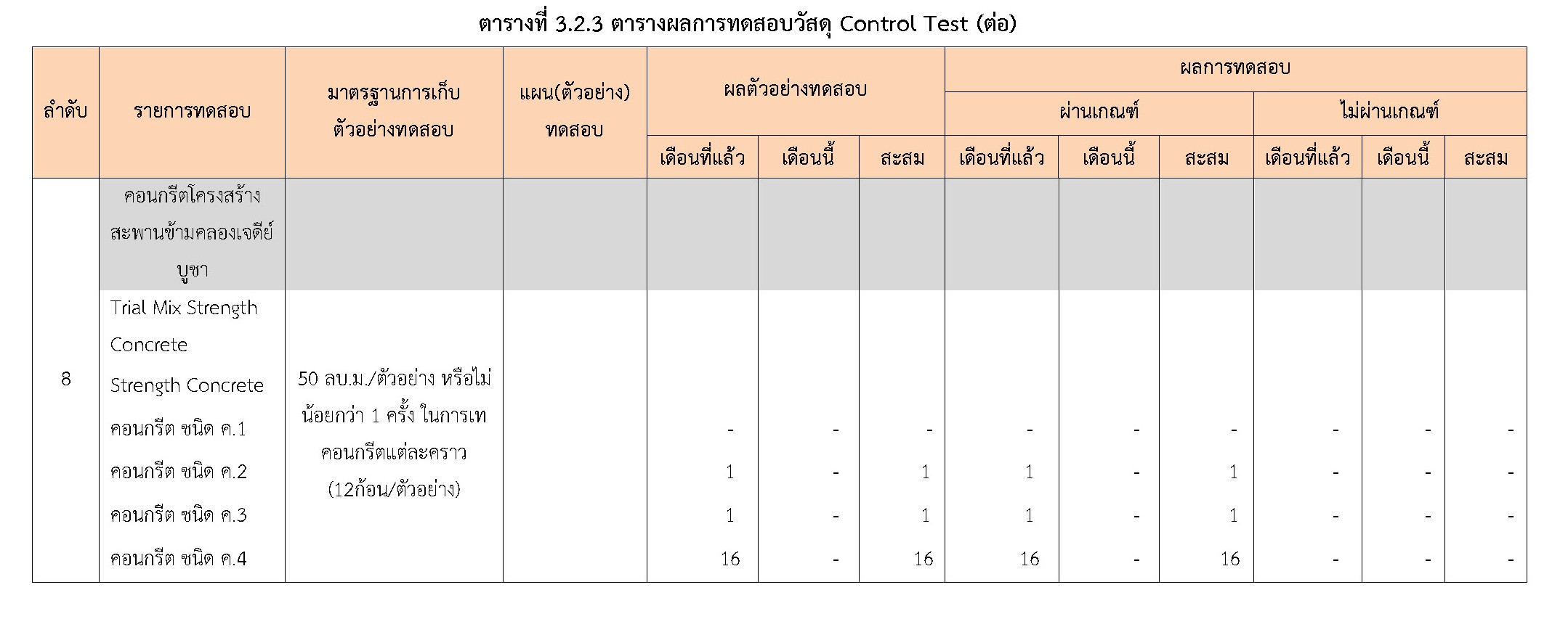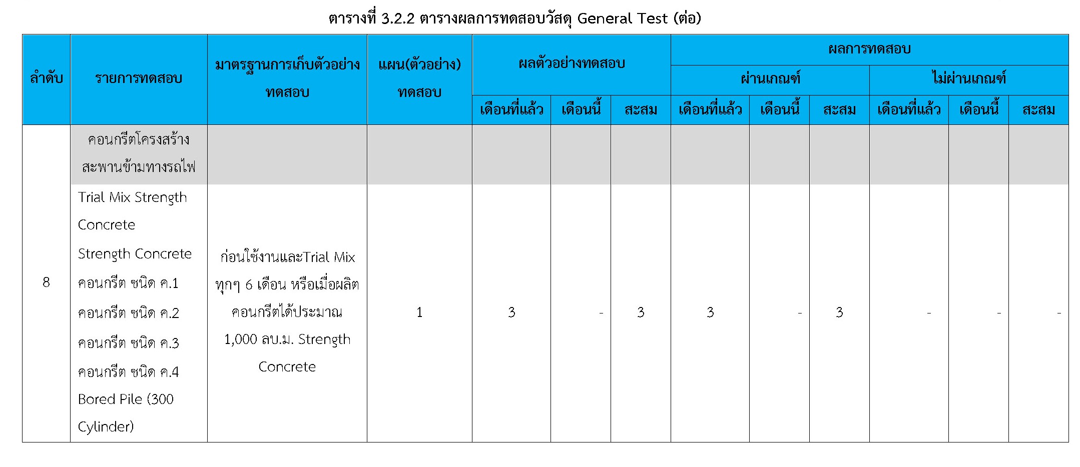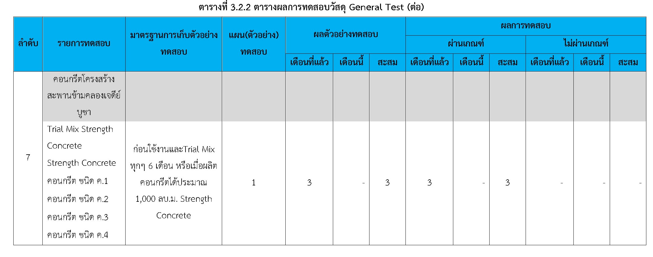ในระหว่างวันที่ 1-30 กันยายน 2560 ผู้ว่าจ้างได้เสนอหนังสือขออนุมัติใช้วัสดุถึงที่ปรึกษา โดยที่ปรึกษาได้ตรวจสอบวัสดุดังกล่าวมีผลทดสอบดังตาราง