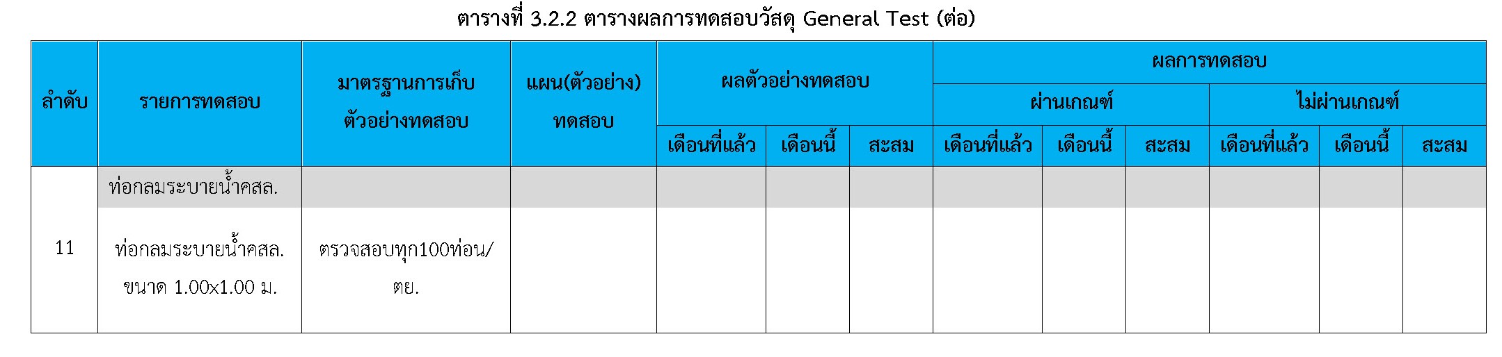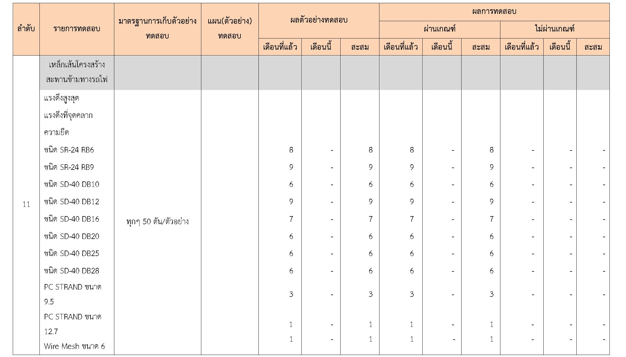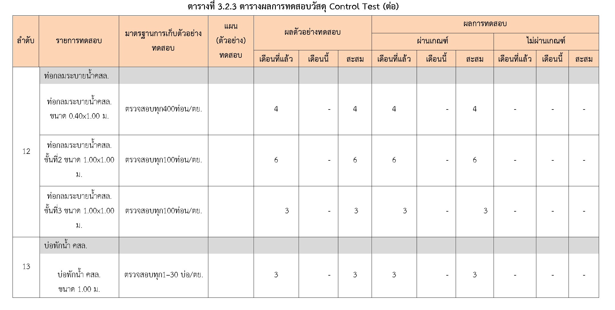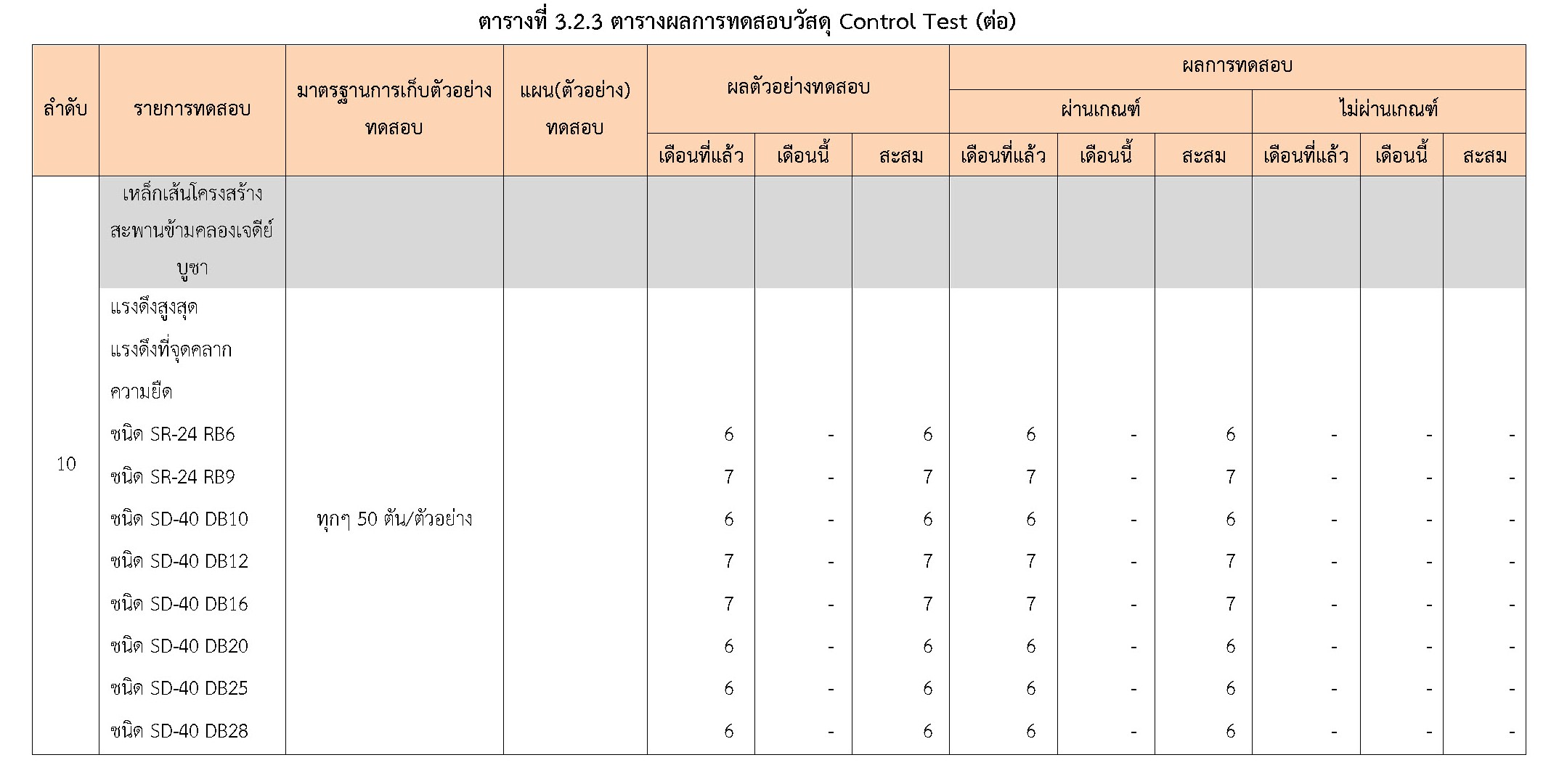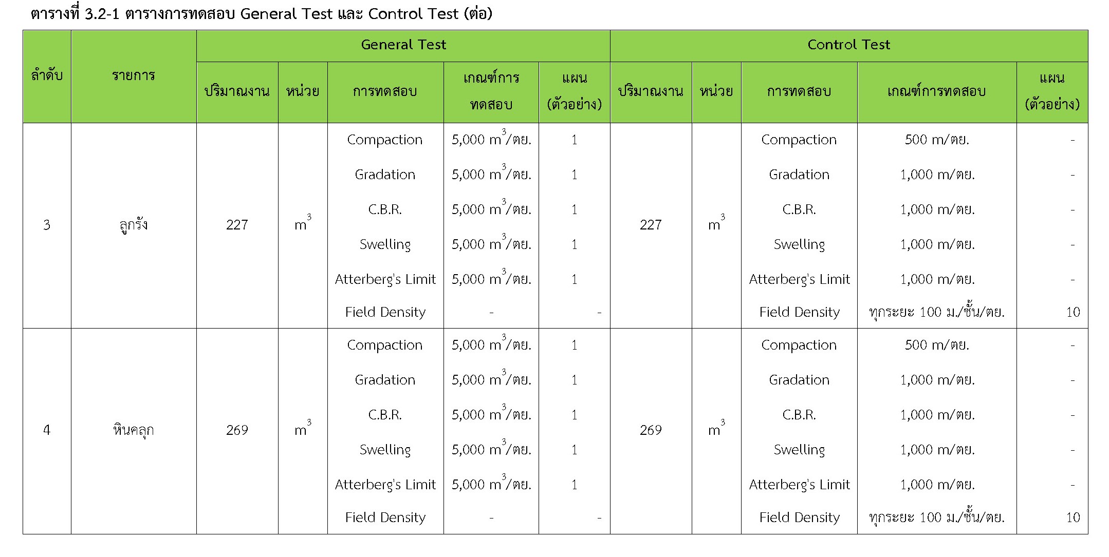 ในระหว่างวันที่ 1-30 กันยายน 2560 ผู้ว่าจ้างได้เสนอหนังสือขออนุมัติใช้วัสดุถึงที่ปรึกษา โดยที่ปรึกษาได้ตรวจสอบวัสดุดังกล่าวมีผลทดสอบดังตาราง