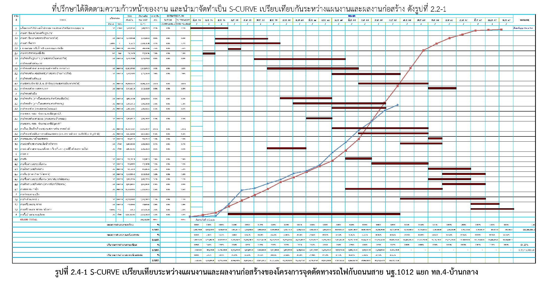 ที่ปรึกษาได้ติดตามความก้าวหน้าของงาน และนำมาจัดทำเป็น S-CURVE เปรียบเทียบกันระหว่างแผนงานและผลงานก่อสร้าง ดังรูปที่ 2.2-1