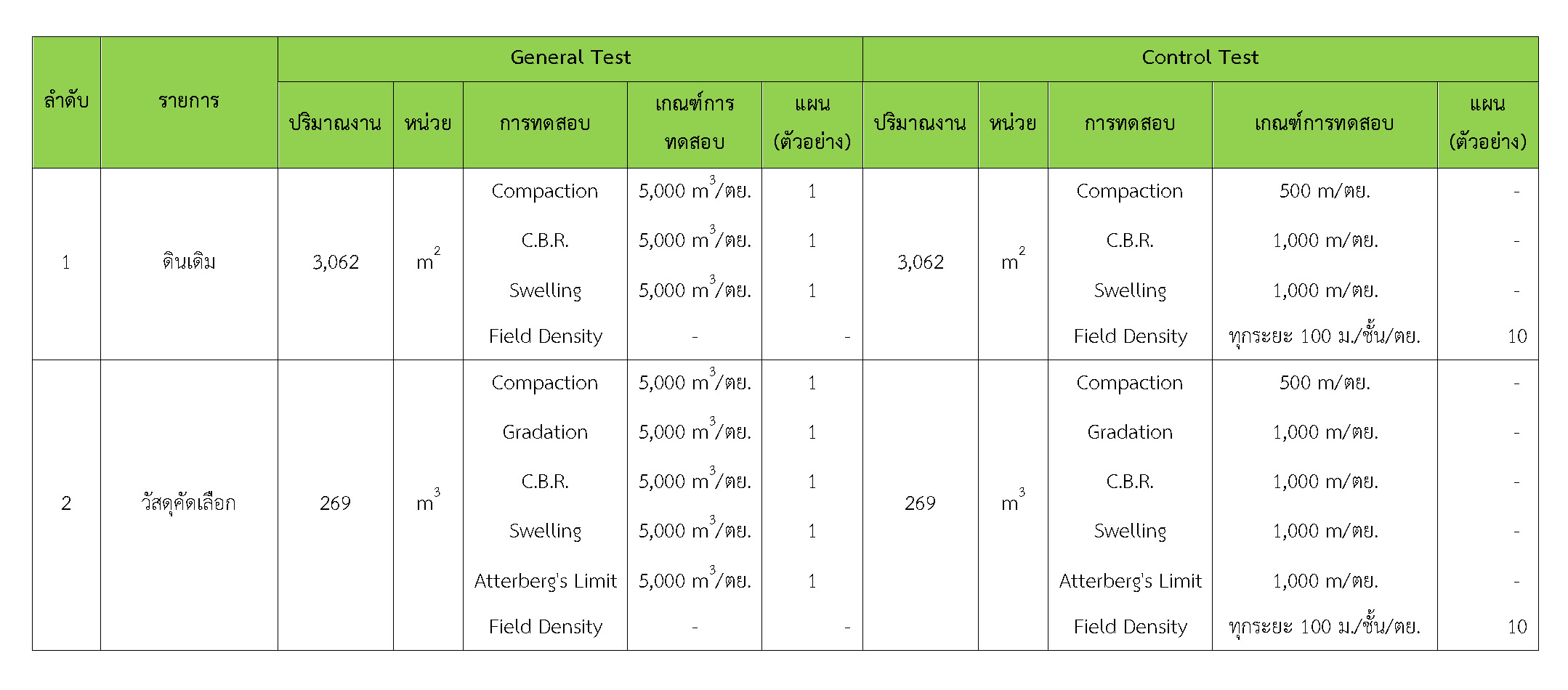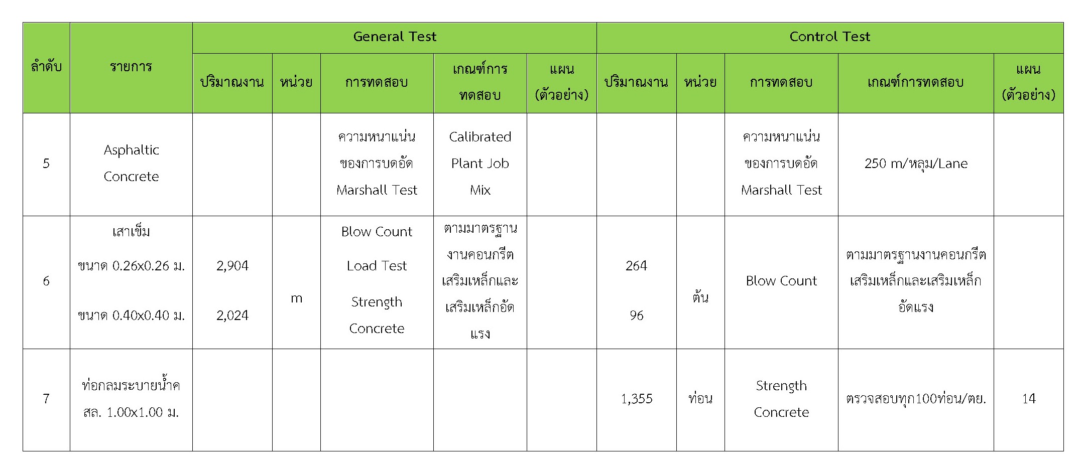 ในเดือน ตุลาคม 2560 ได้แสดงเกณฑ์การทดสอบ General Test และ Control Test แสดงไว้ในตารางที่ 3.2-1 – 3.2-3 ดังนี้
