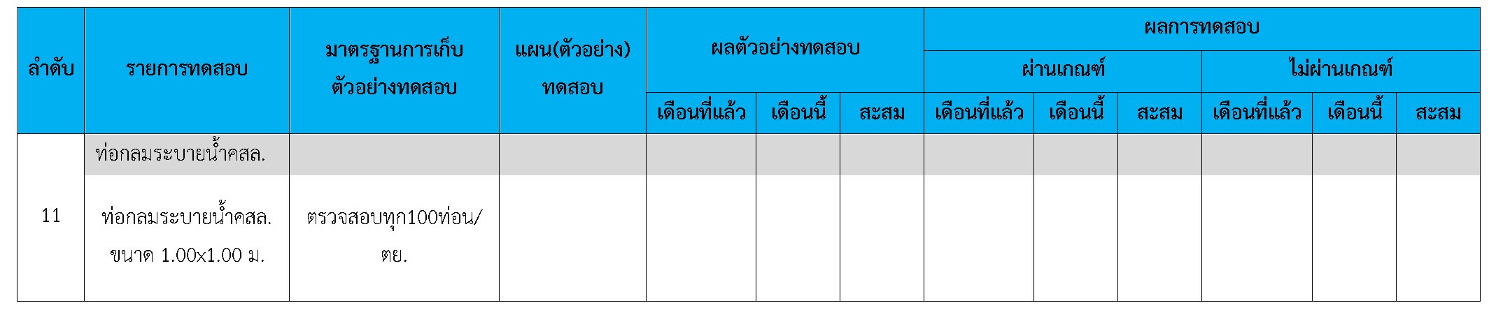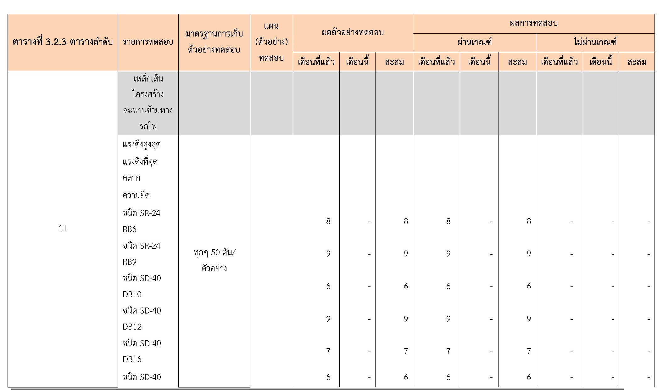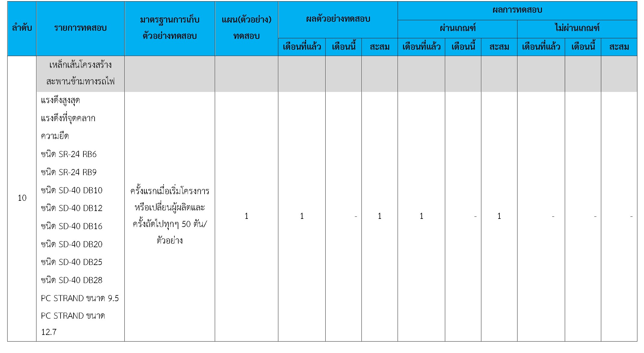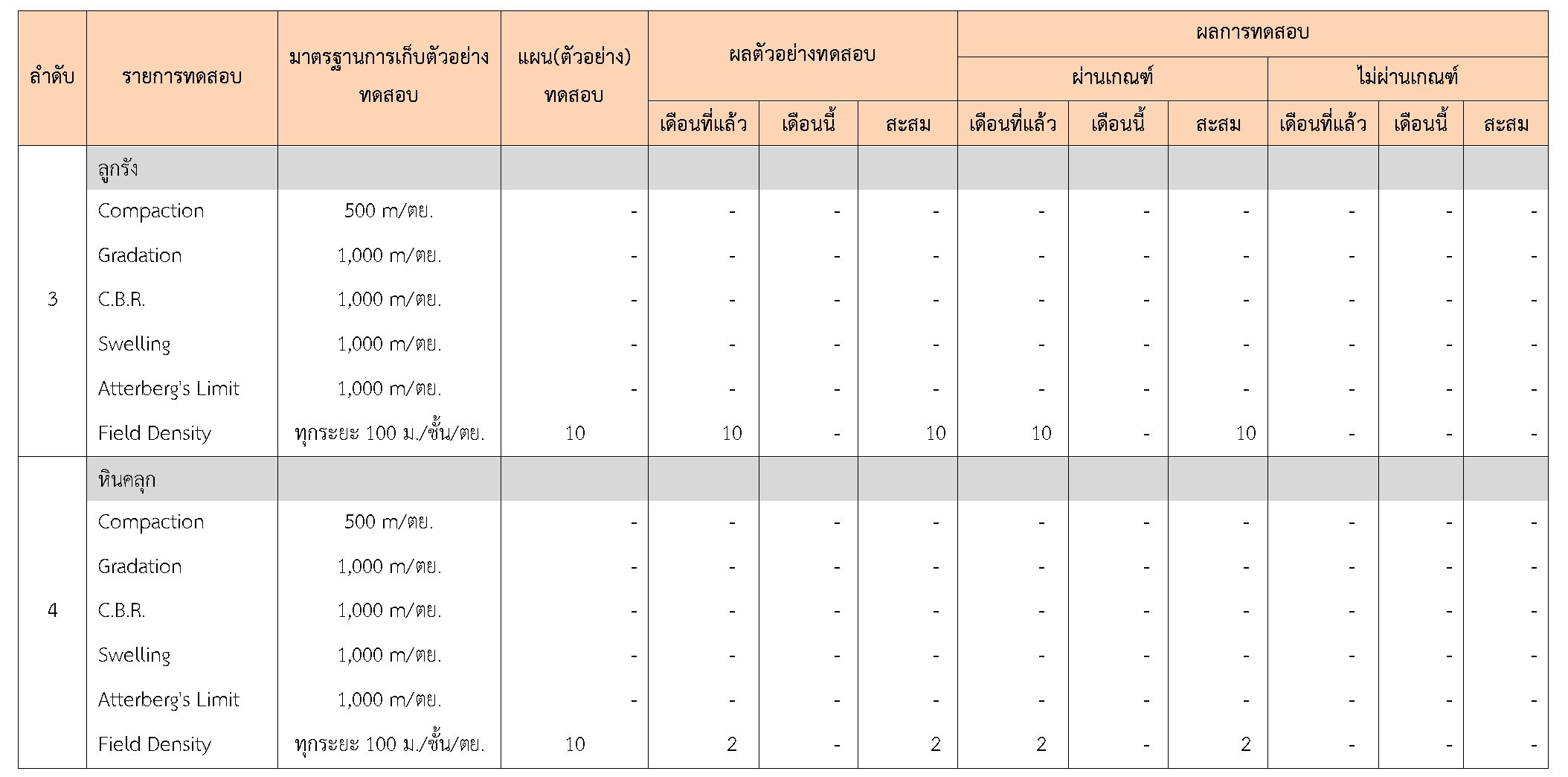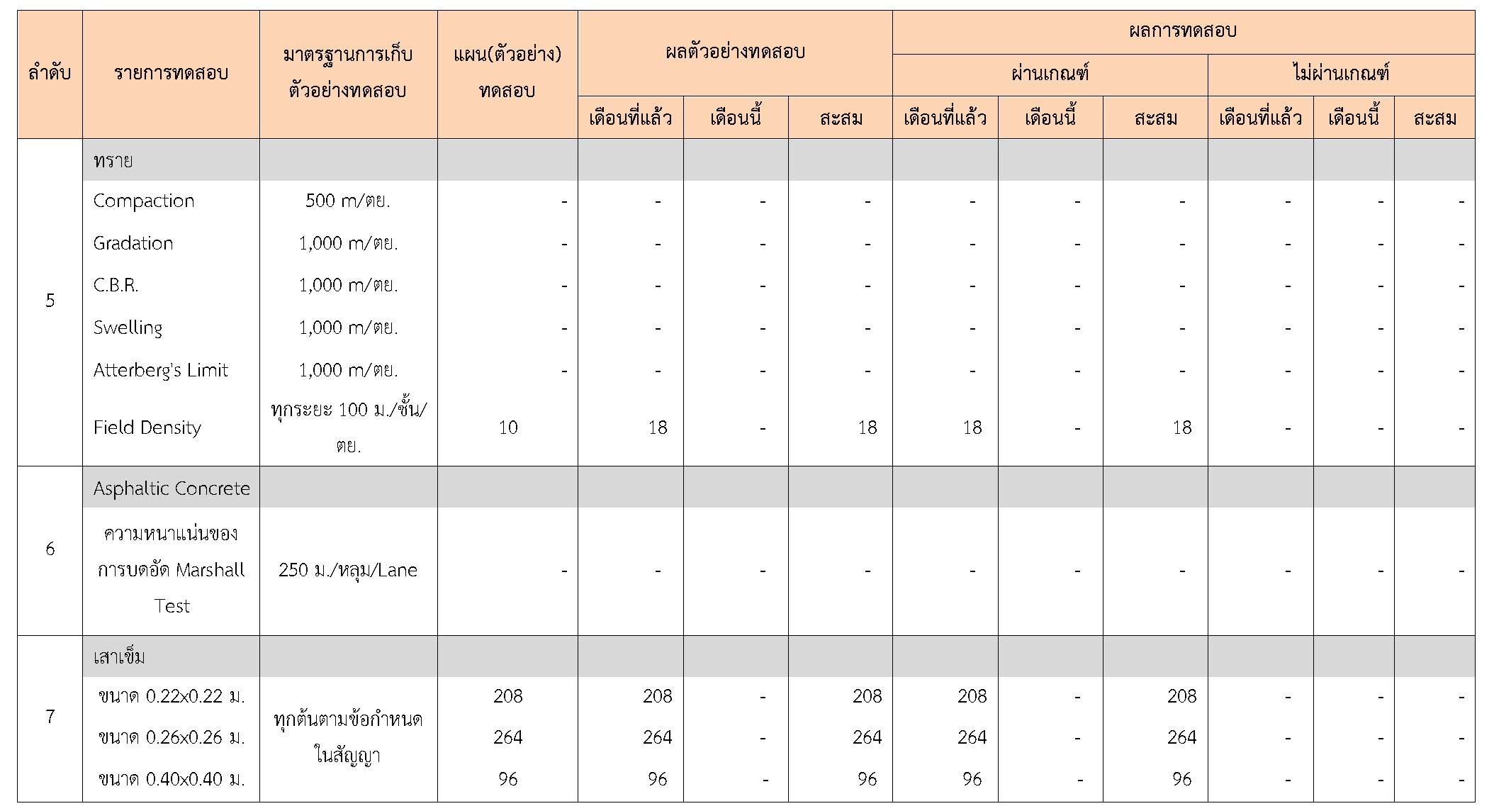 ในระหว่างวันที่ 1-31 ตุลาคม 2560 ผู้ว่าจ้างได้เสนอหนังสือขออนุมัติใช้วัสดุถึงที่ปรึกษา โดยที่ปรึกษาได้ตรวจสอบวัสดุดังกล่าวมีผลทดสอบดังตาราง