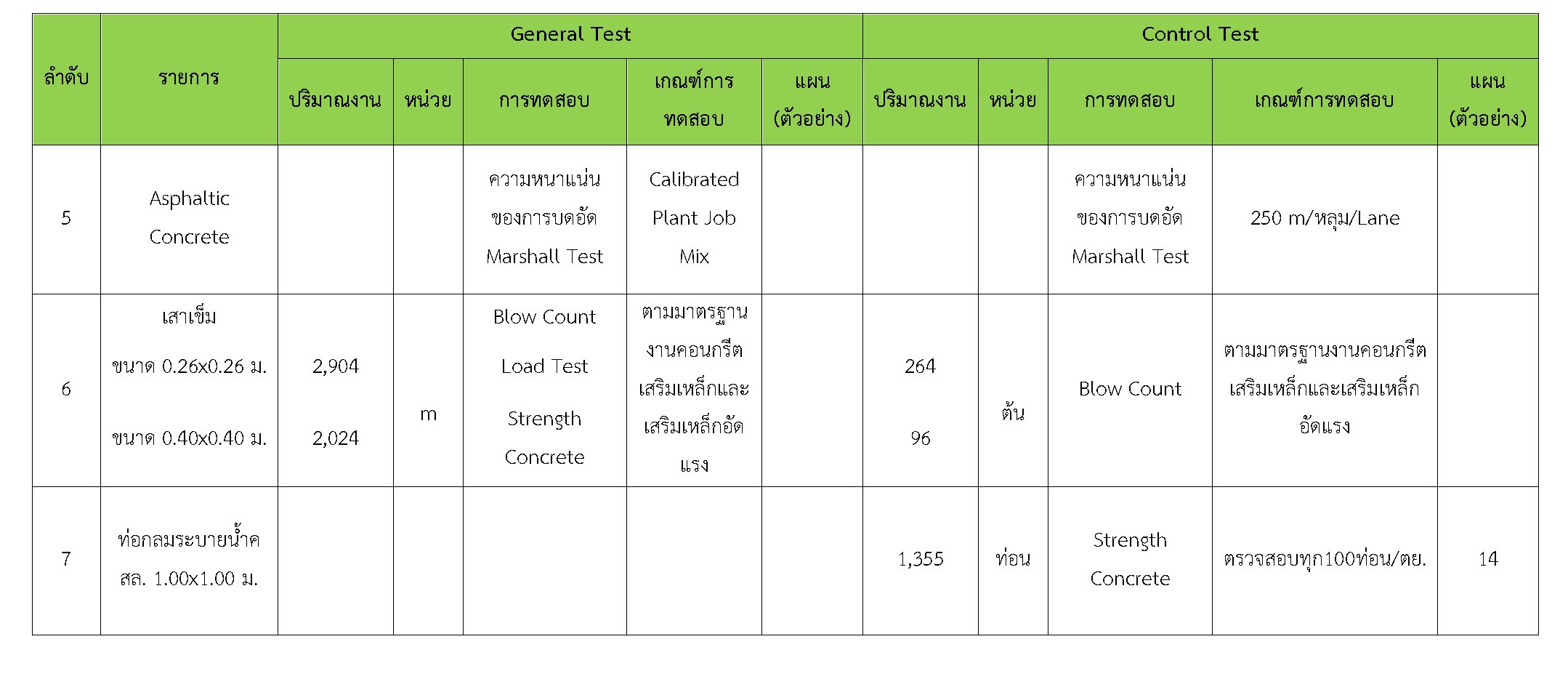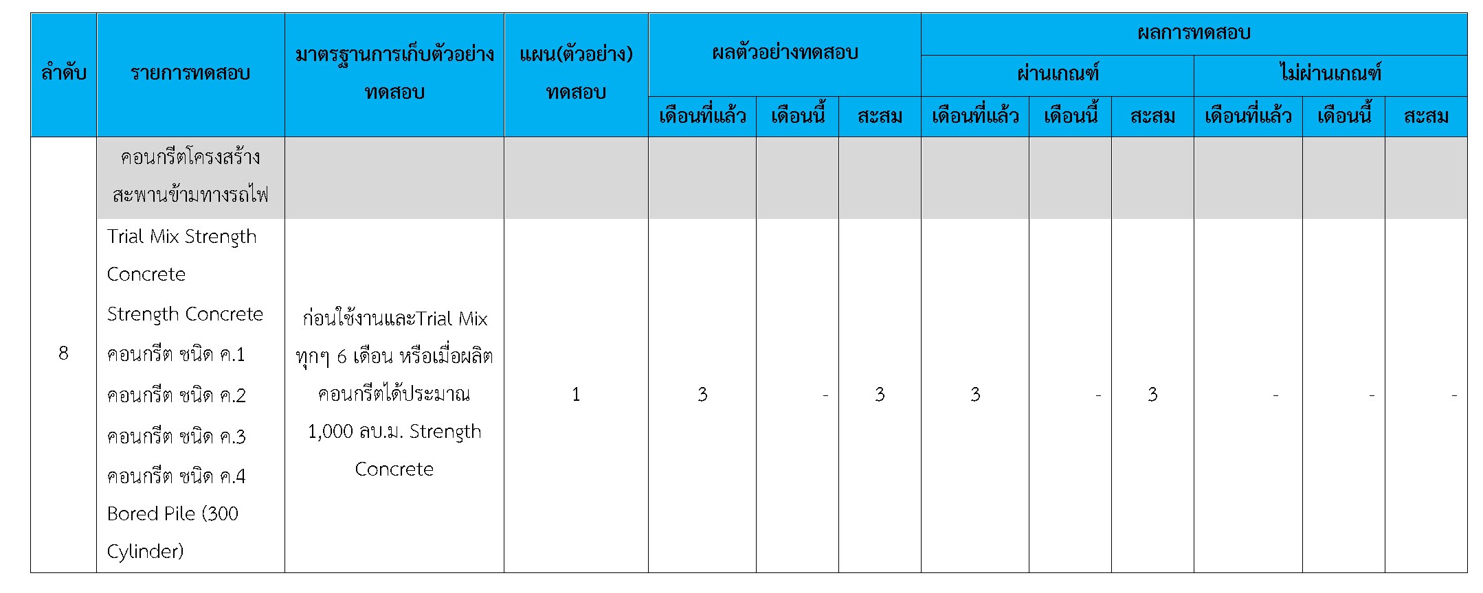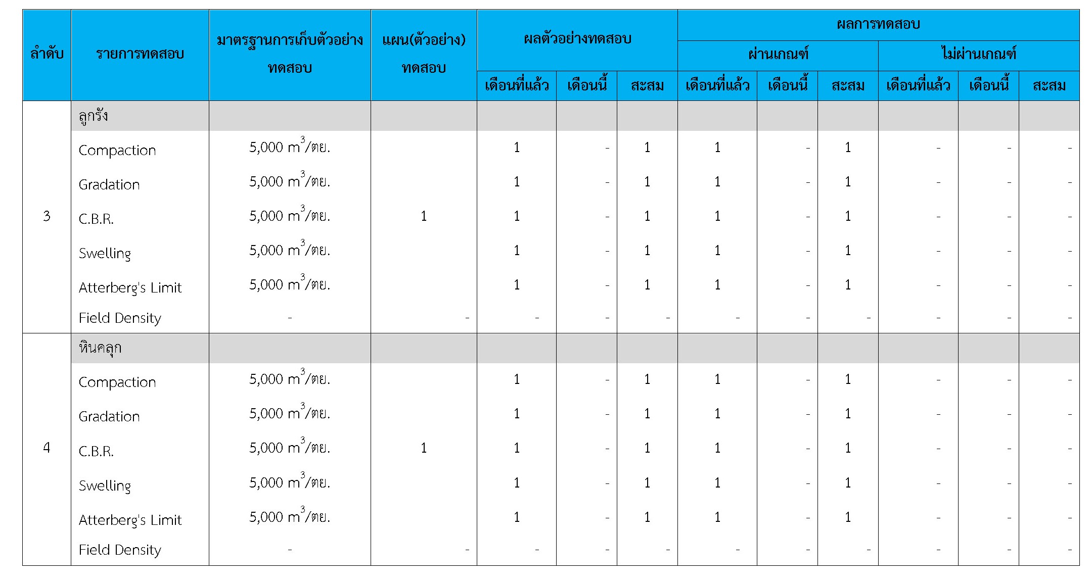 ในระหว่างวันที่ 1-31 ธันวาคม 2560 ผู้ว่าจ้างได้เสนอหนังสือขออนุมัติใช้วัสดุถึงที่ปรึกษา โดยที่ปรึกษาได้ตรวจสอบวัสดุดังกล่าวมีผลทดสอบดังตาราง