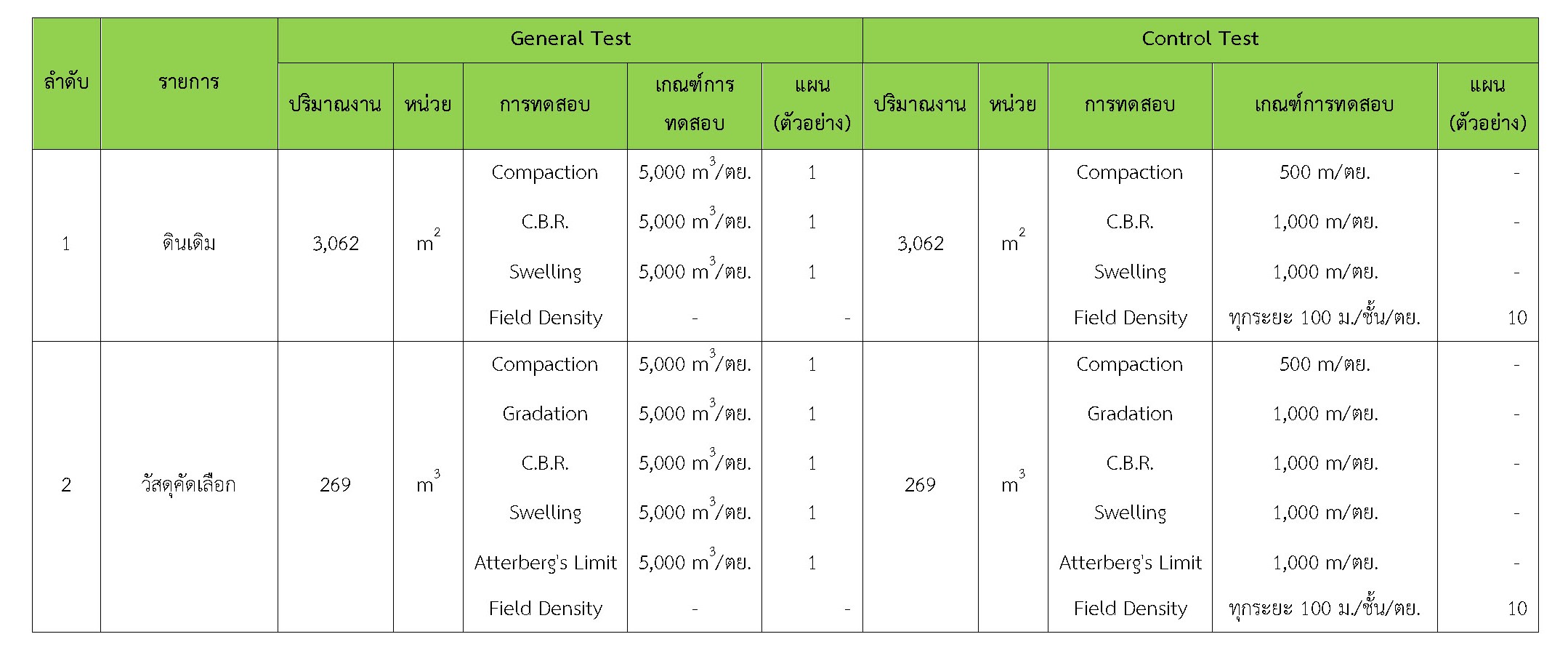 ในระหว่างวันที่ 1-31 มกราคม 2561 ผู้ว่าจ้างได้เสนอหนังสือขออนุมัติใช้วัสดุถึงที่ปรึกษา โดยที่ปรึกษาได้ตรวจสอบวัสดุดังกล่าวมีผลทดสอบดังตาราง