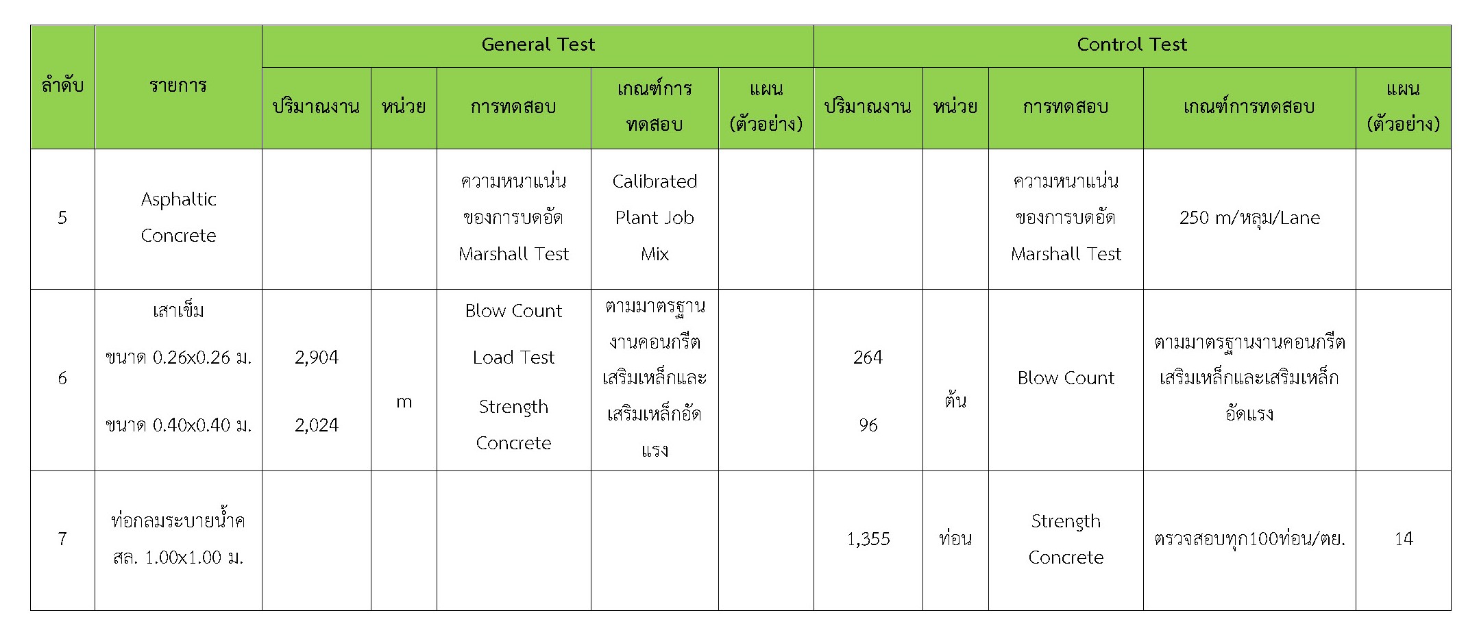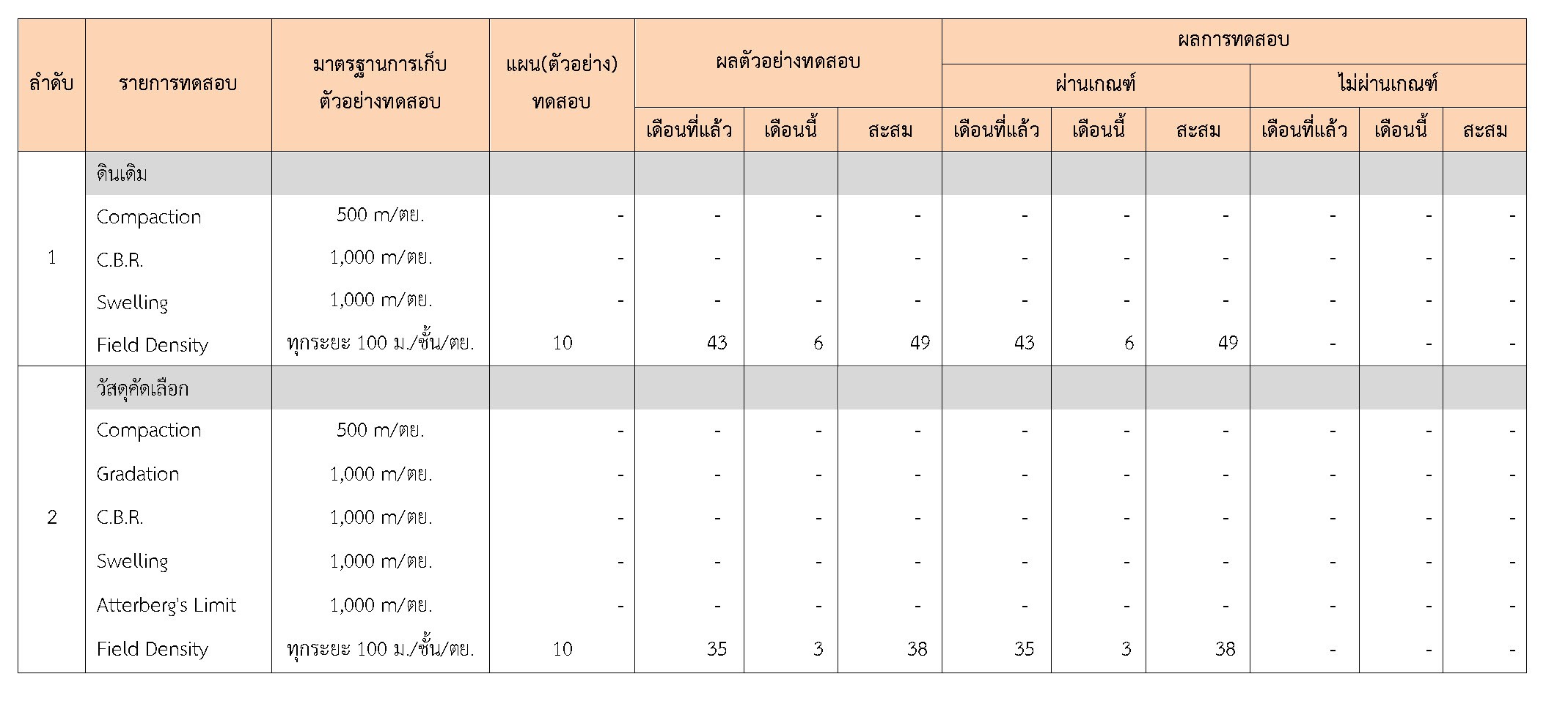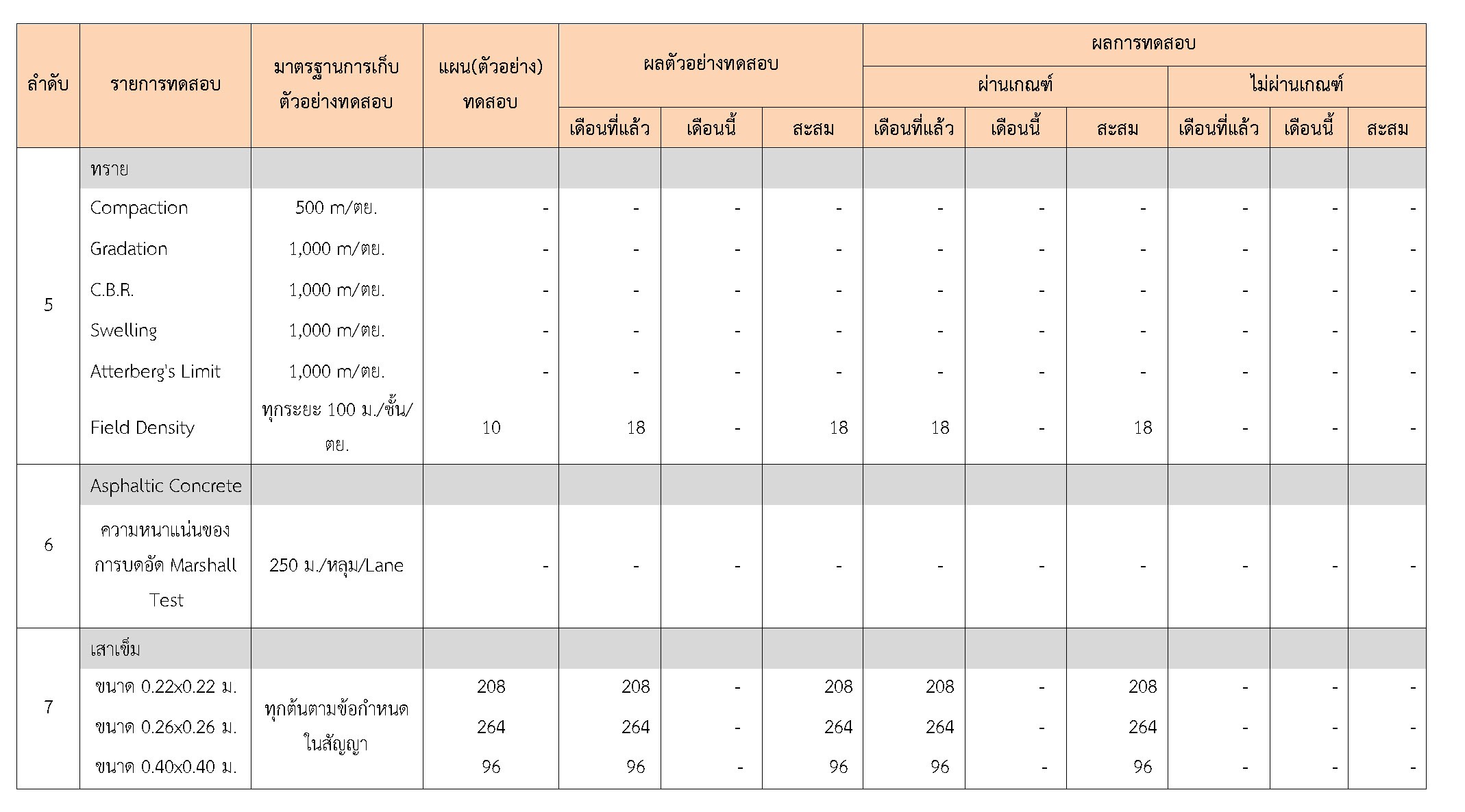 ในระหว่างวันที่ 1-31 มกราคม 2560 ผู้ว่าจ้างได้เสนอหนังสือขออนุมัติใช้วัสดุถึงที่ปรึกษา โดยที่ปรึกษาได้ตรวจสอบวัสดุดังกล่าวมีผลทดสอบดังตาราง