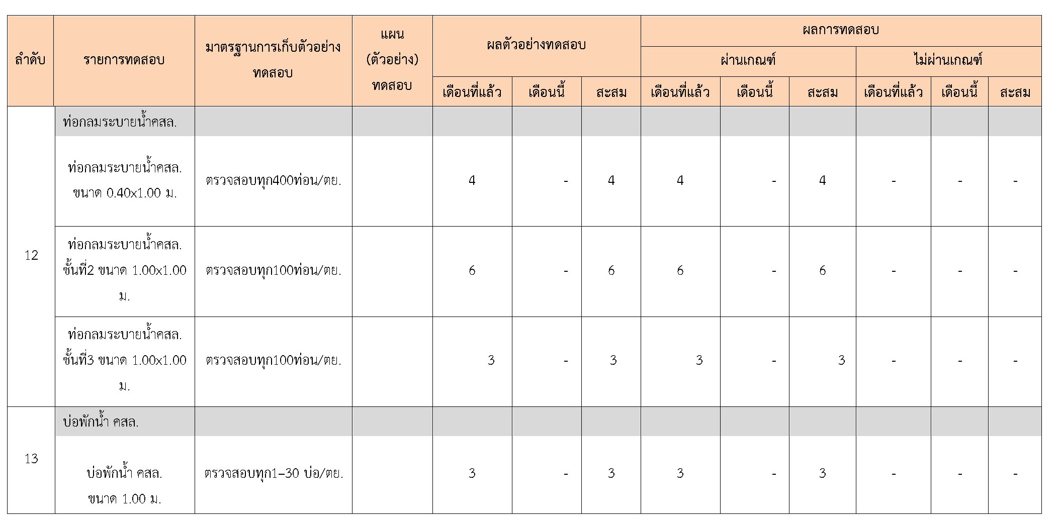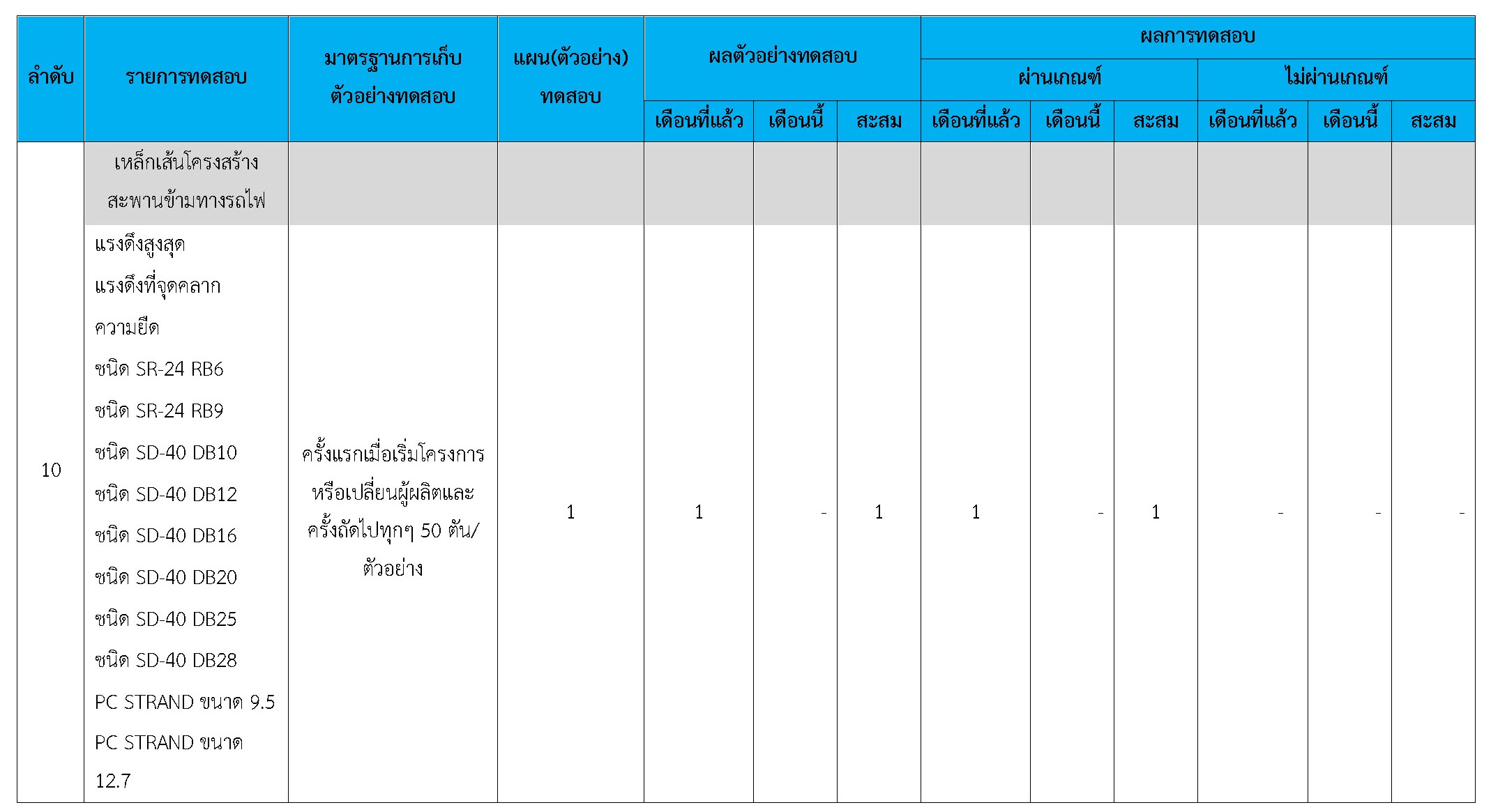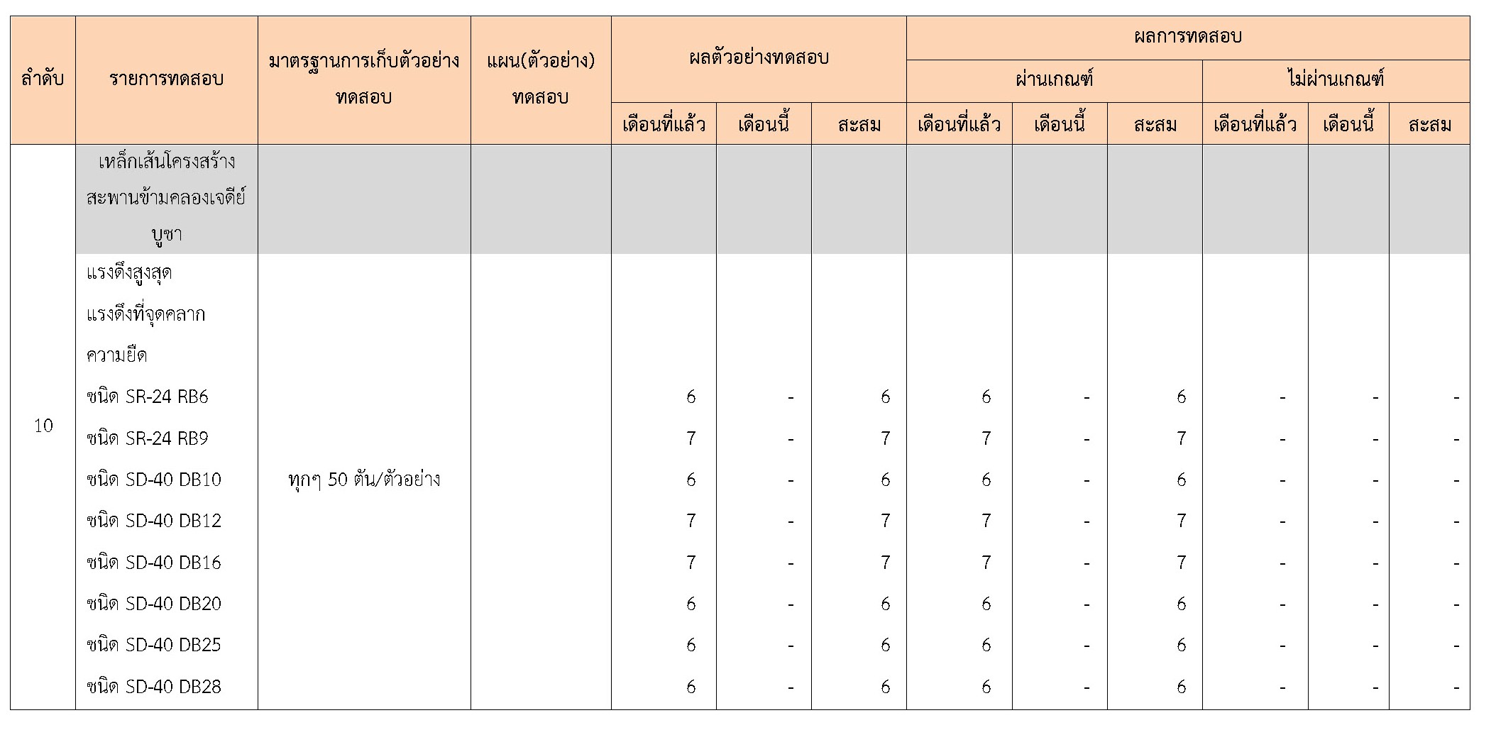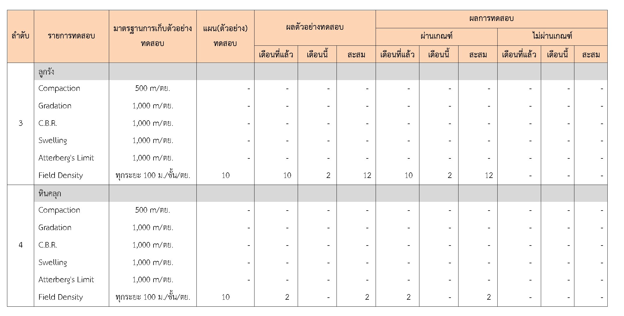 ในระหว่างวันที่ 1-31 มกราคม 2560 ผู้ว่าจ้างได้เสนอหนังสือขออนุมัติใช้วัสดุถึงที่ปรึกษา โดยที่ปรึกษาได้ตรวจสอบวัสดุดังกล่าวมีผลทดสอบดังตาราง