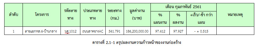 2.1 ความก้าวหน้าของงานก่อสร้าง