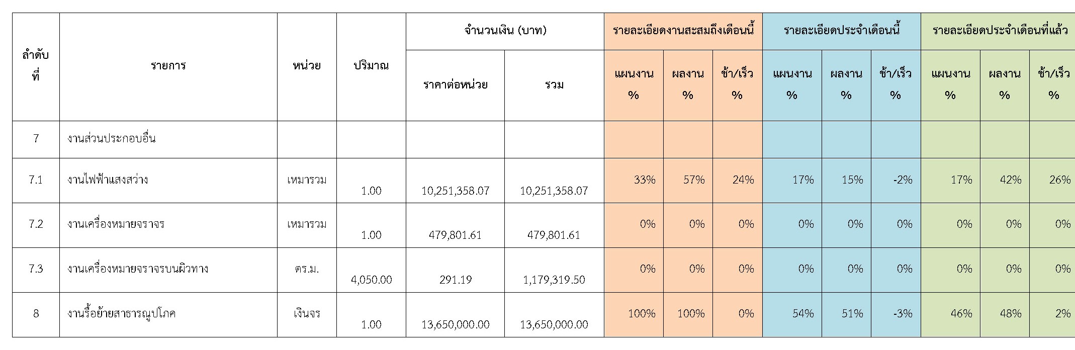 2.2 ความก้าวหน้าของงานก่อสร้างแยกตามรายการ