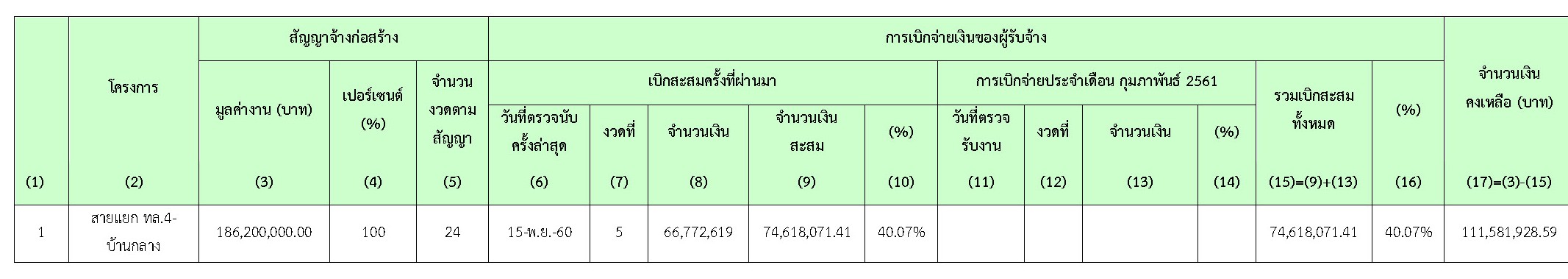 ในช่วงเดือนกุมภาพันธ์ 2561 ที่ผ่านมาผู้รับจ้างดำเนินงานต่างๆ ที่มีรายละเอียดของงานหลักๆดังนี้