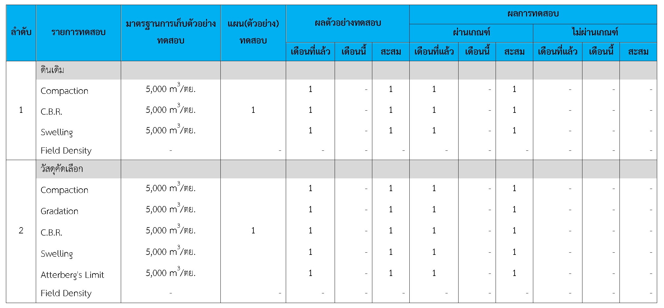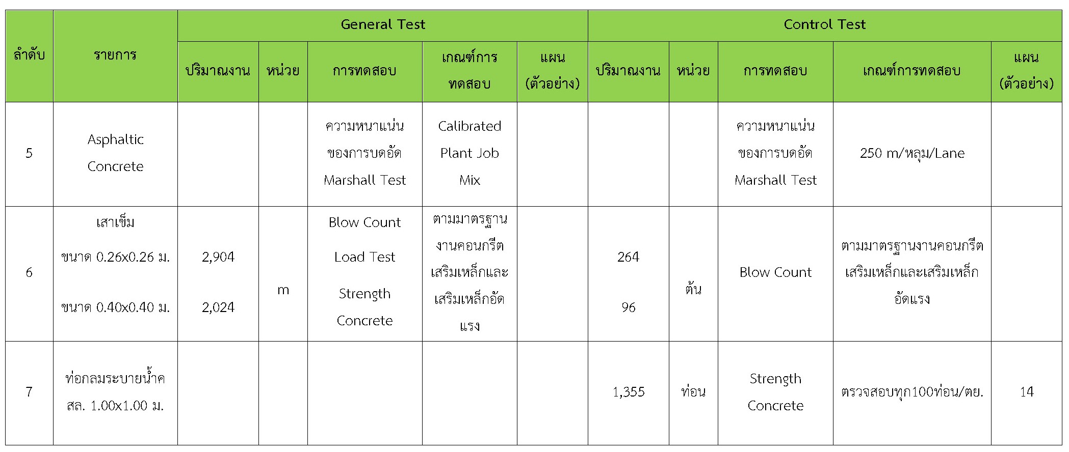 ในระหว่างวันที่ 1-28 กุมภาพันธ์ 2561 ผู้ว่าจ้างได้เสนอหนังสือขออนุมัติใช้วัสดุถึงที่ปรึกษา โดยที่ปรึกษาได้ตรวจสอบวัสดุดังกล่าวมีผลทดสอบดังตาราง