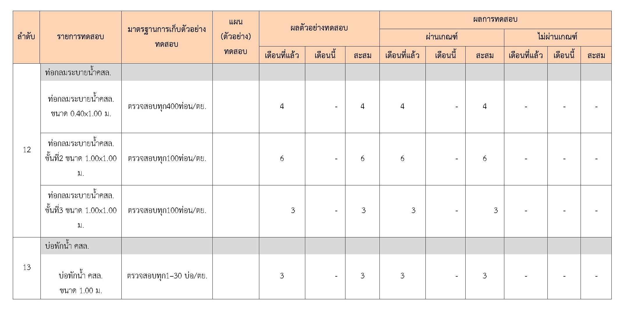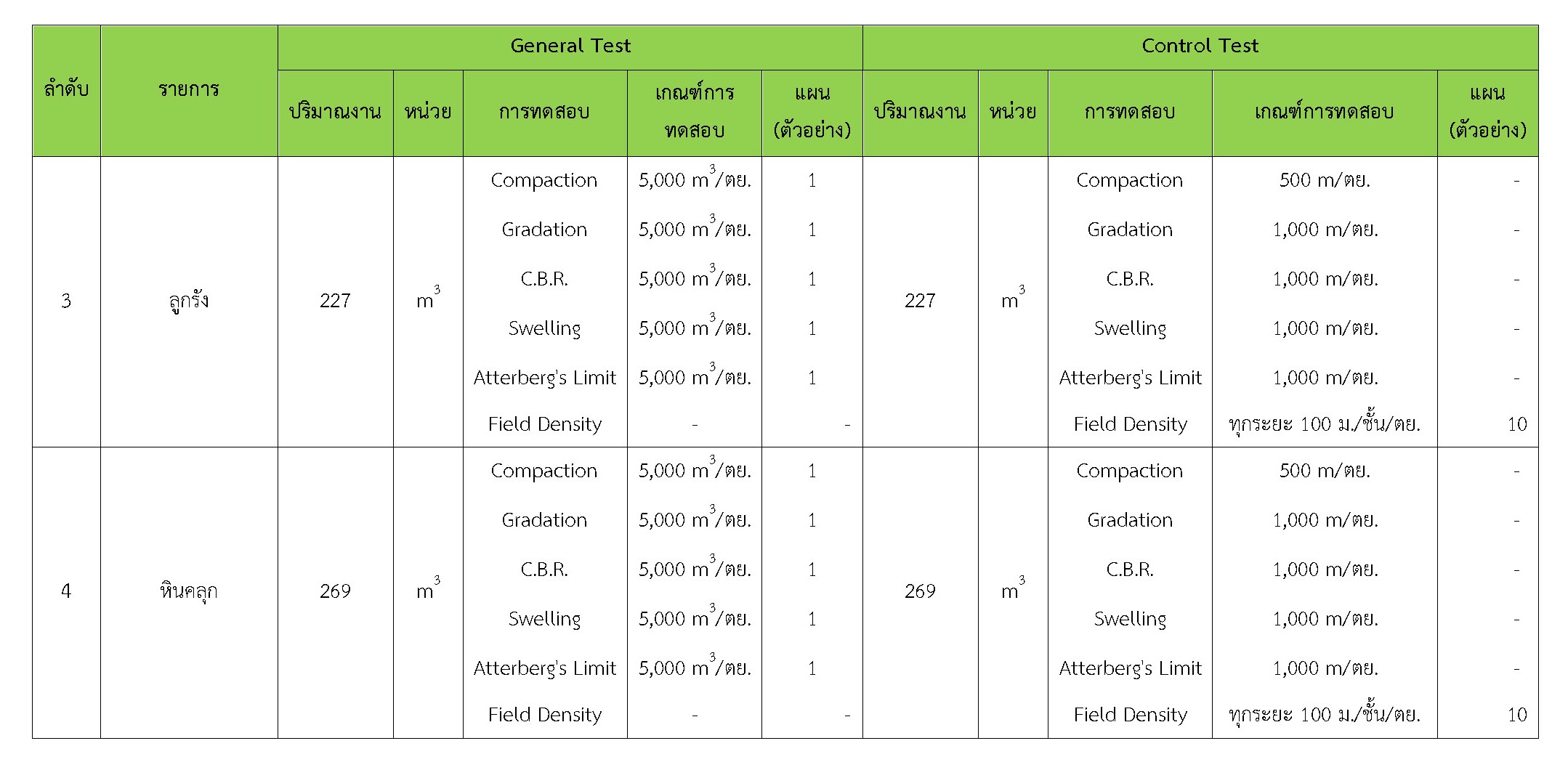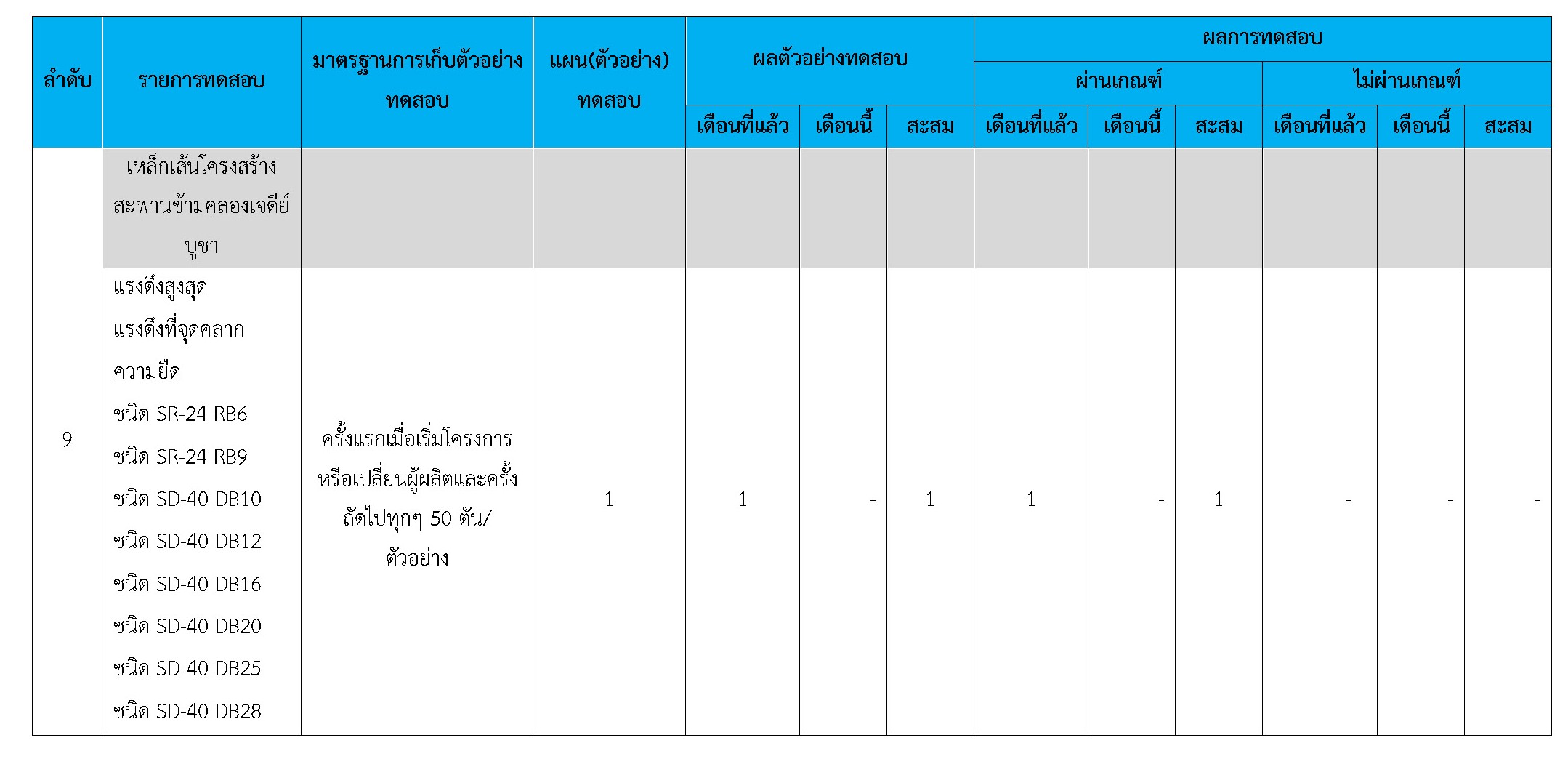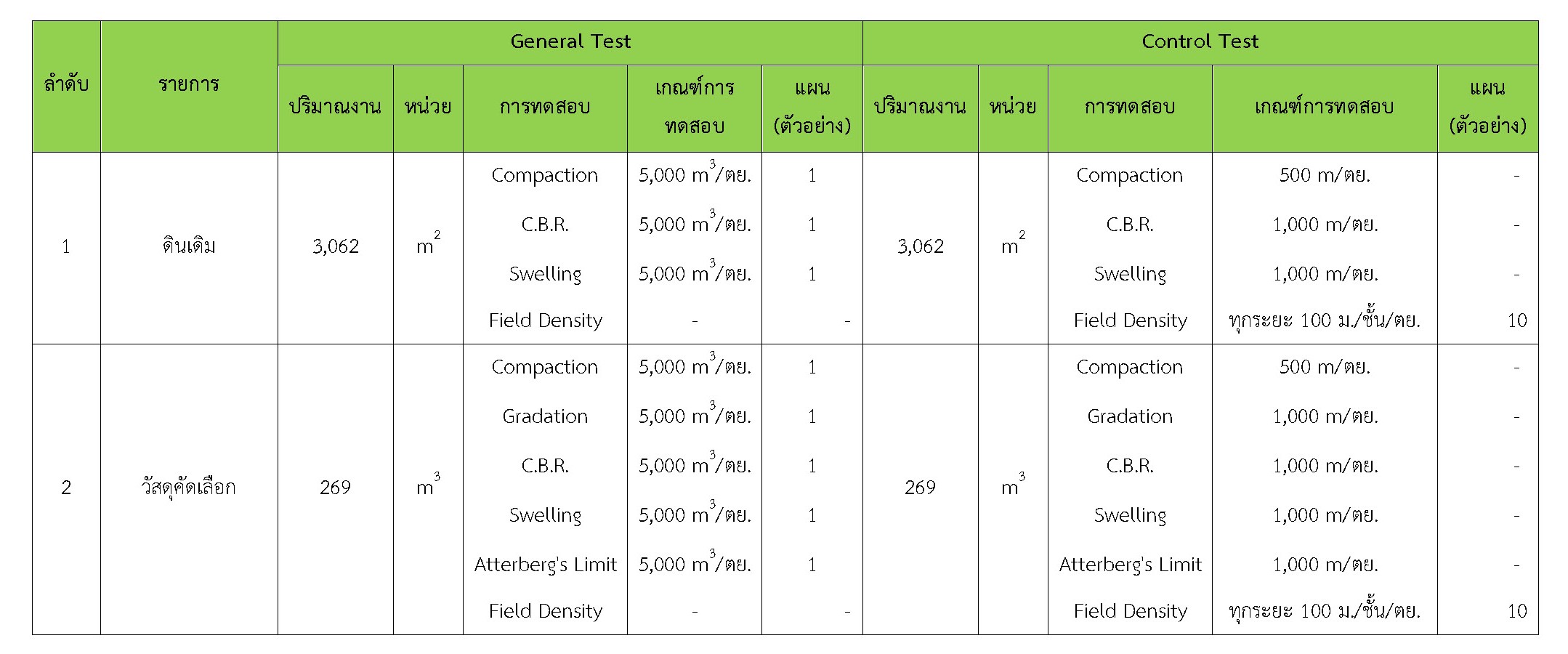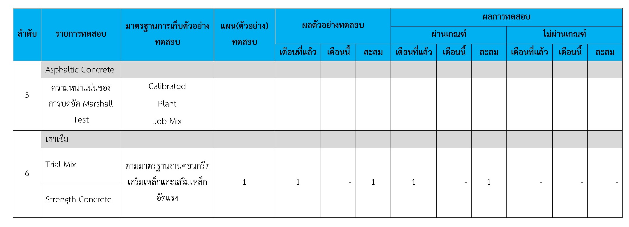 ในระหว่างวันที่ 1-31 มีนาคม 2561 ผู้ว่าจ้างได้เสนอหนังสือขออนุมัติใช้วัสดุถึงที่ปรึกษา โดยที่ปรึกษาได้ตรวจสอบวัสดุดังกล่าวมีผลทดสอบดังตาราง