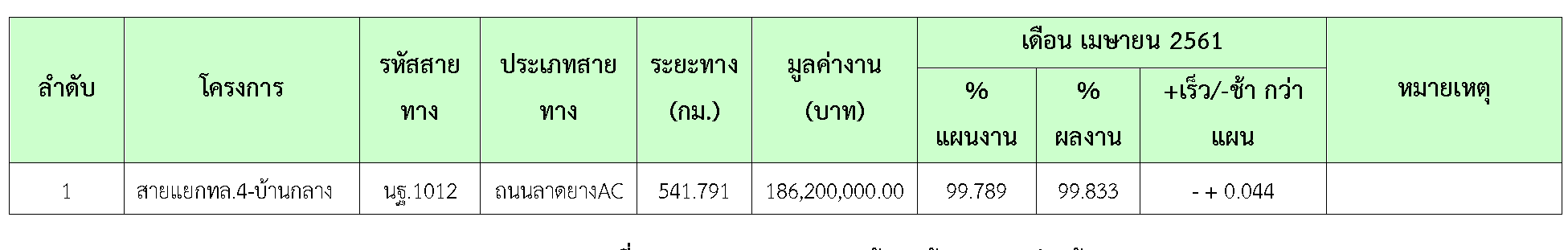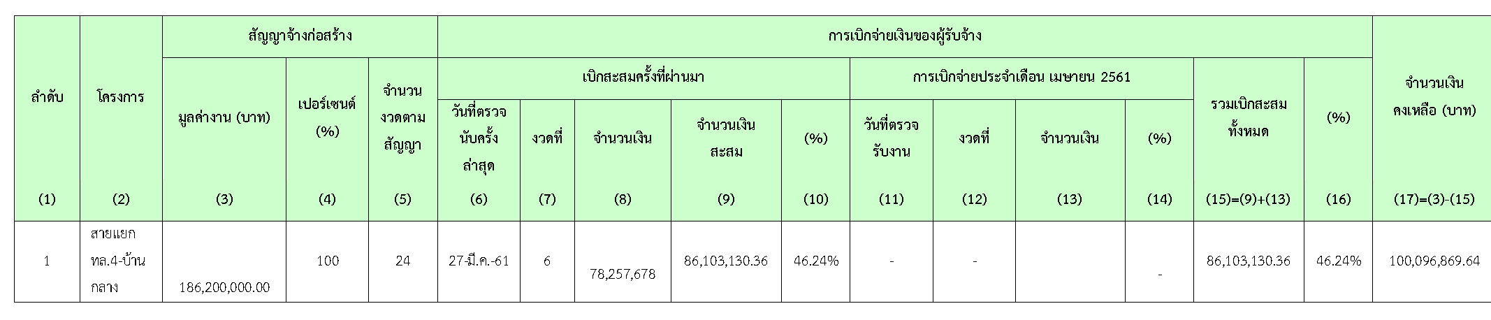 ในช่วงเดือนเมษายน 2561 ที่ผ่านมาผู้รับจ้างดำเนินงานต่างๆ ที่มีรายละเอียดของงานหลักๆดังนี้