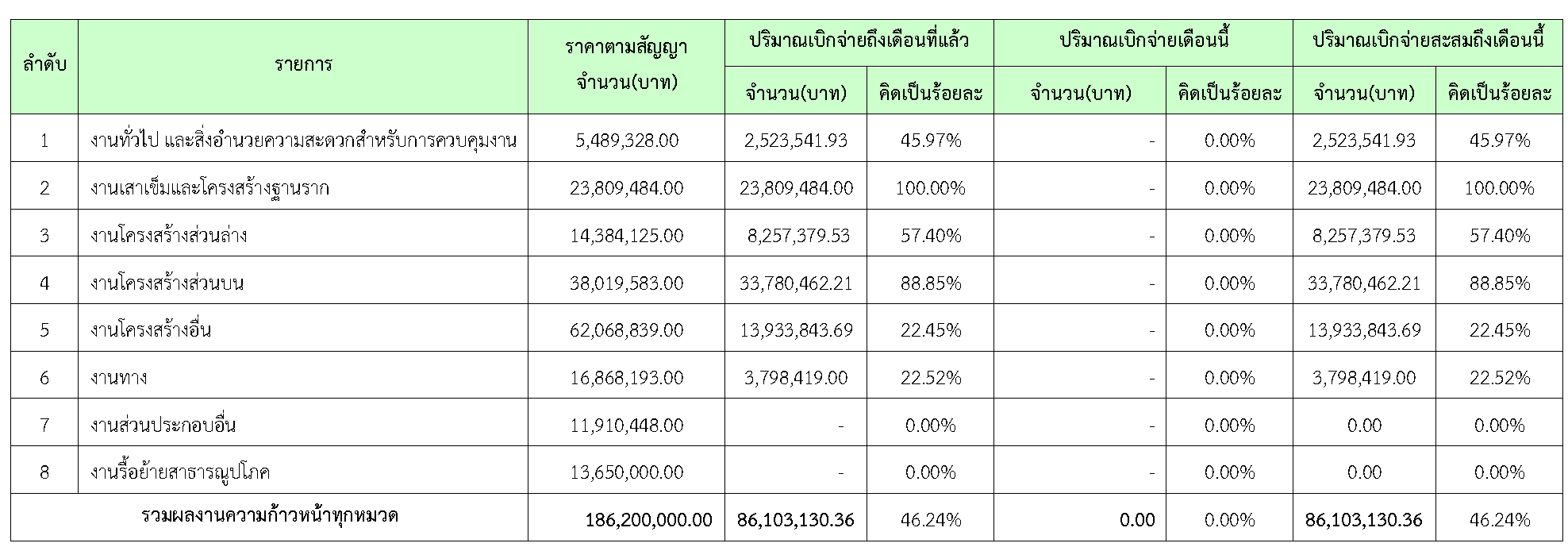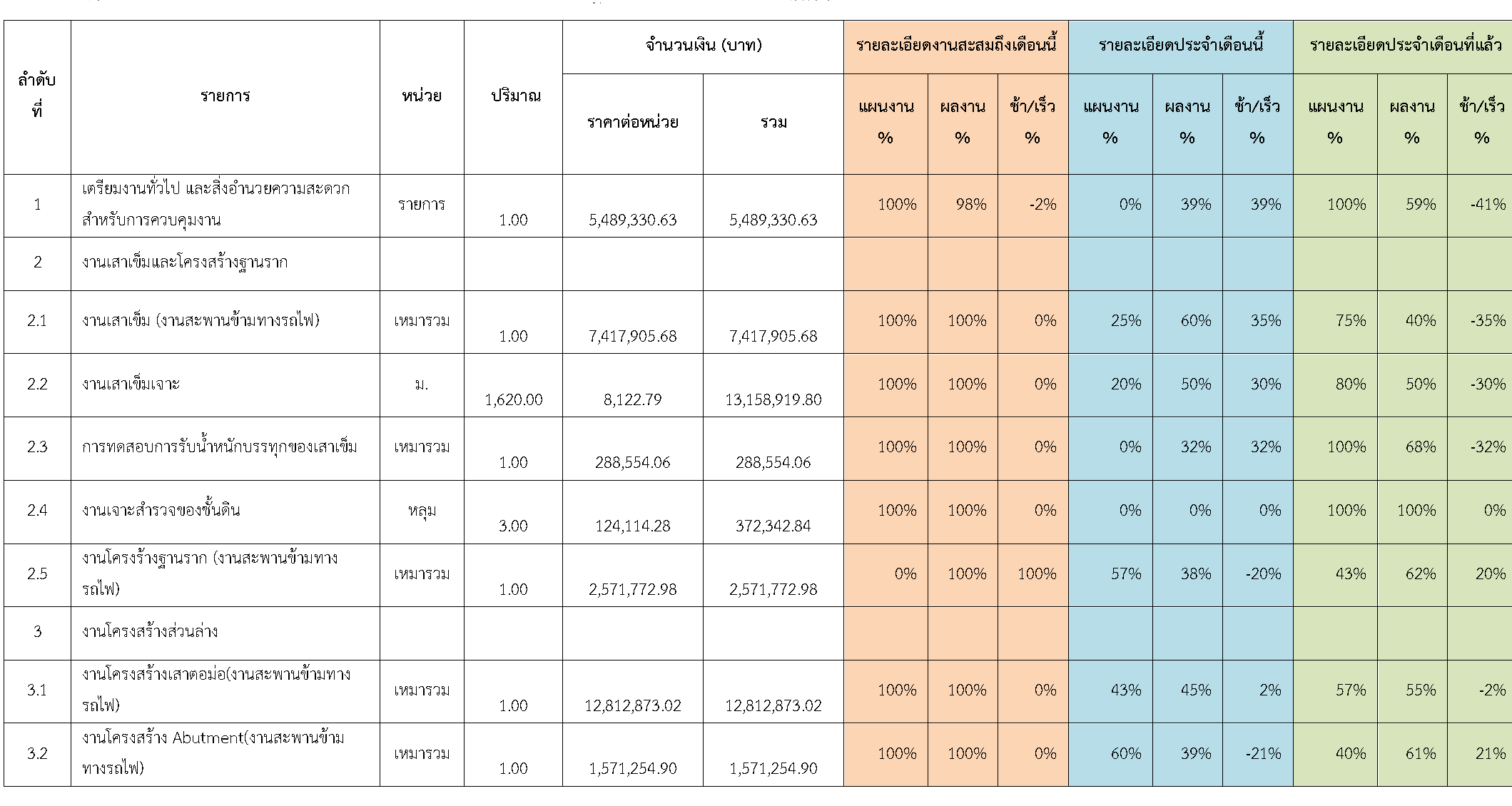 ตารางที่ 2.1-1 สรุปผลงานความก้าวหน้าของงานก่อสร้าง