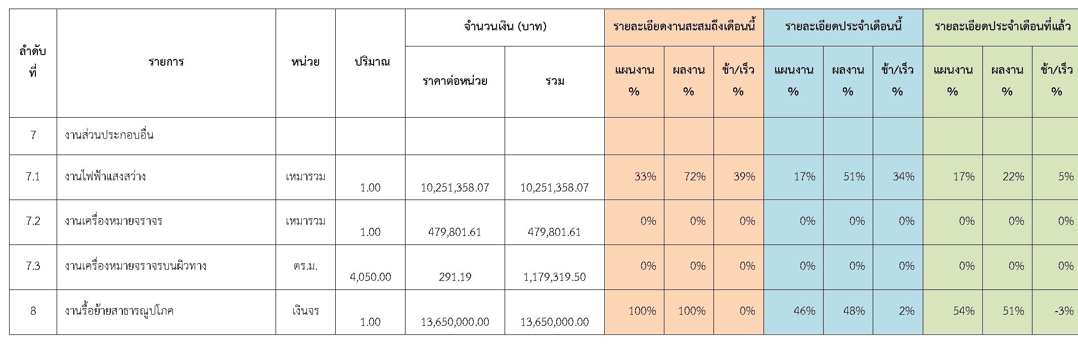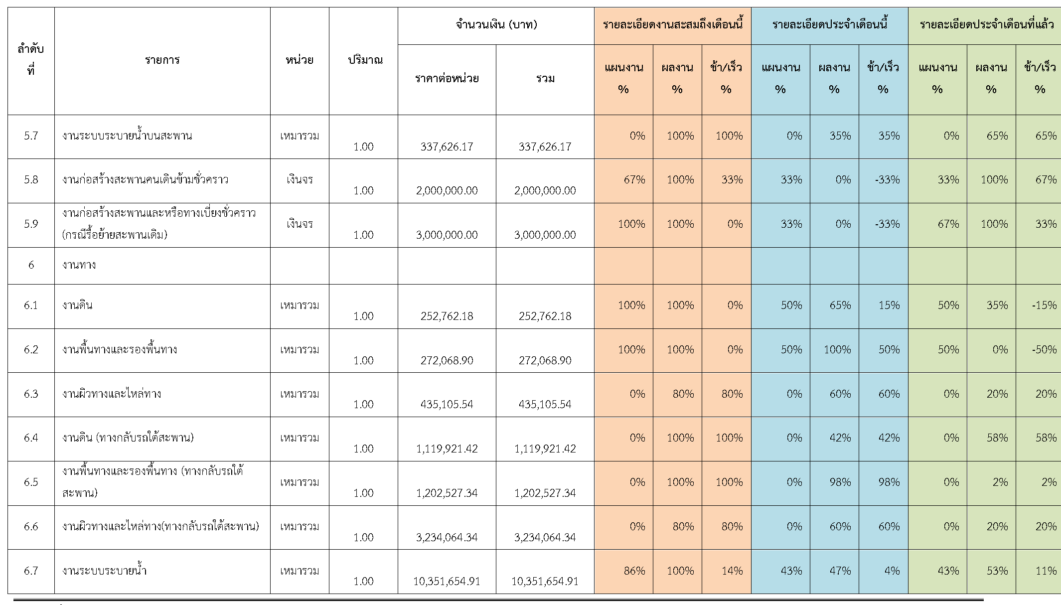2.2 ความก้าวหน้าของงานก่อสร้างแยกตามรายการ