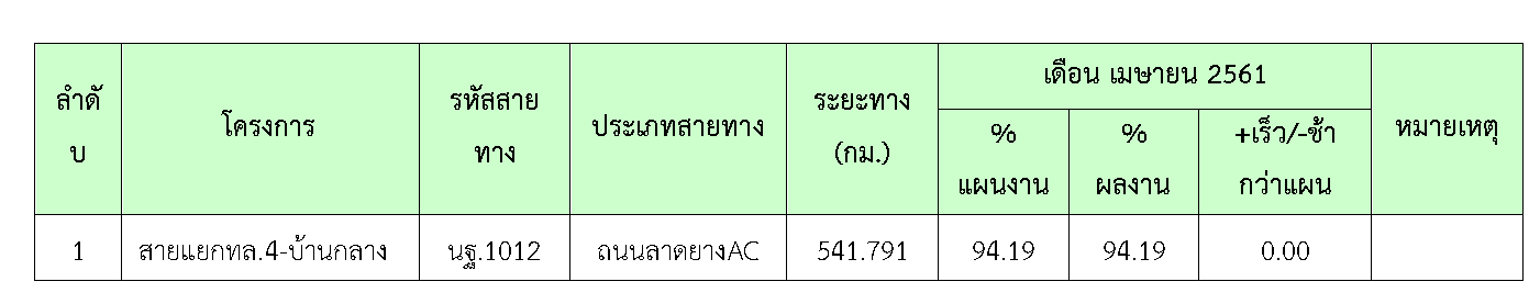 ความก้าวหน้าในช่วงเดือน เมษายน 2561 (94.19%) ผลงานความก้าวหน้าแสดงไว้ในตารางที่ 3.1-1 ดังนี้
