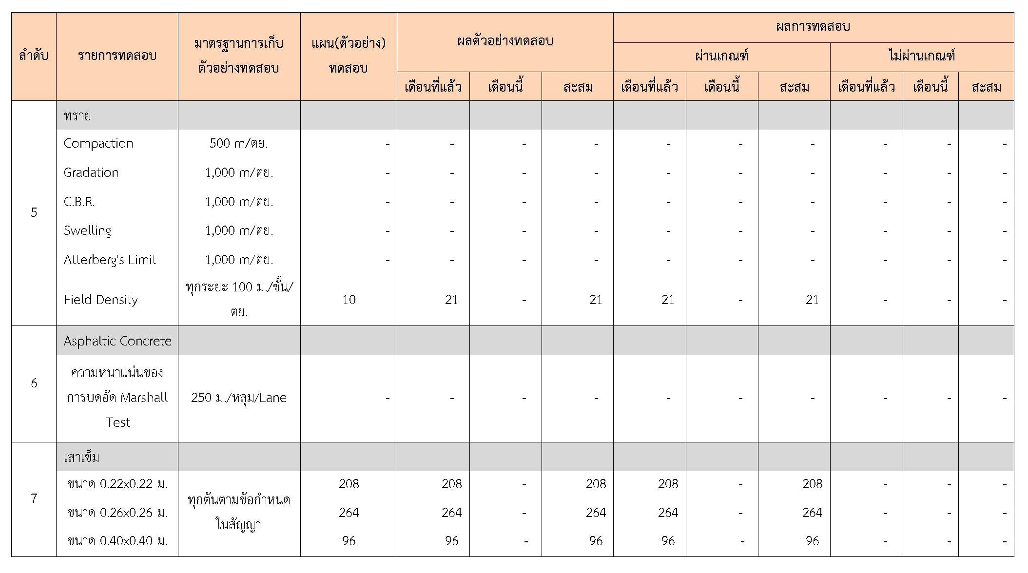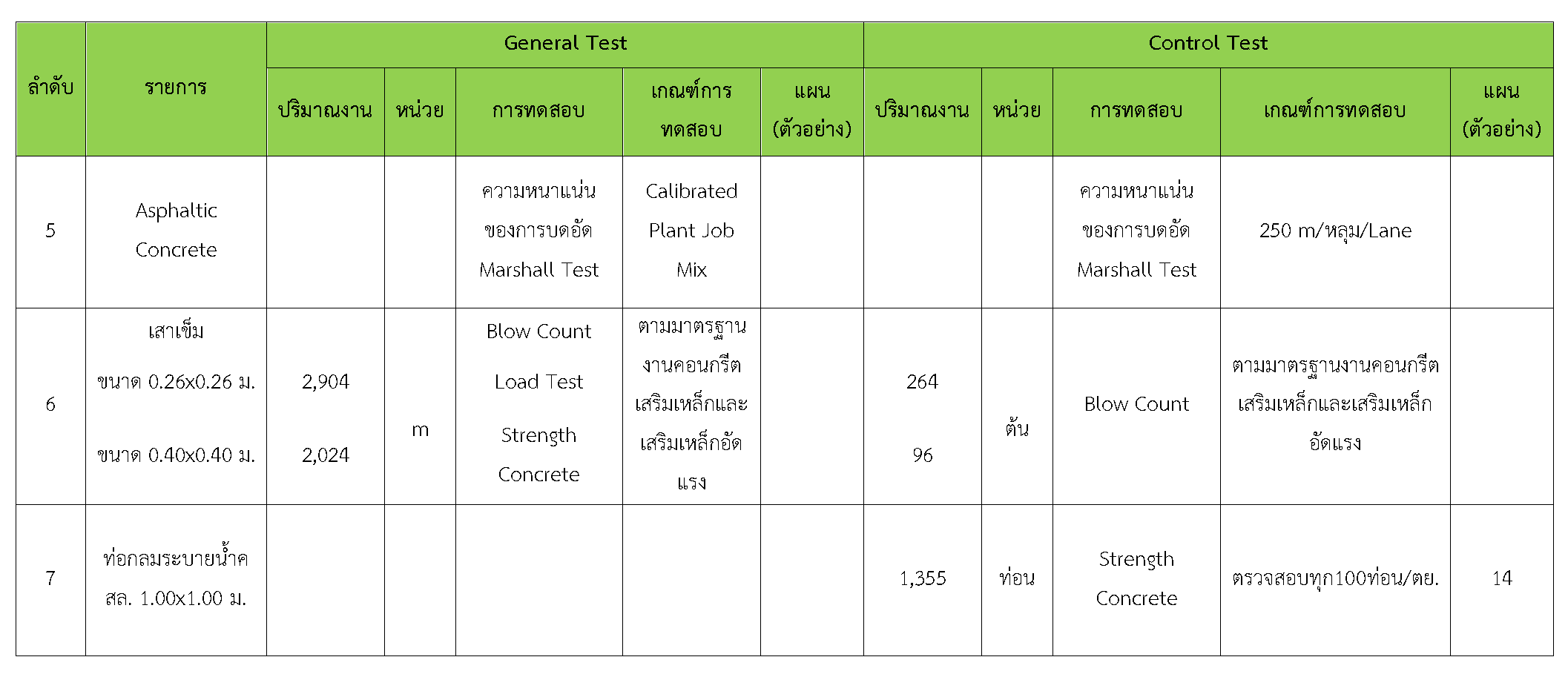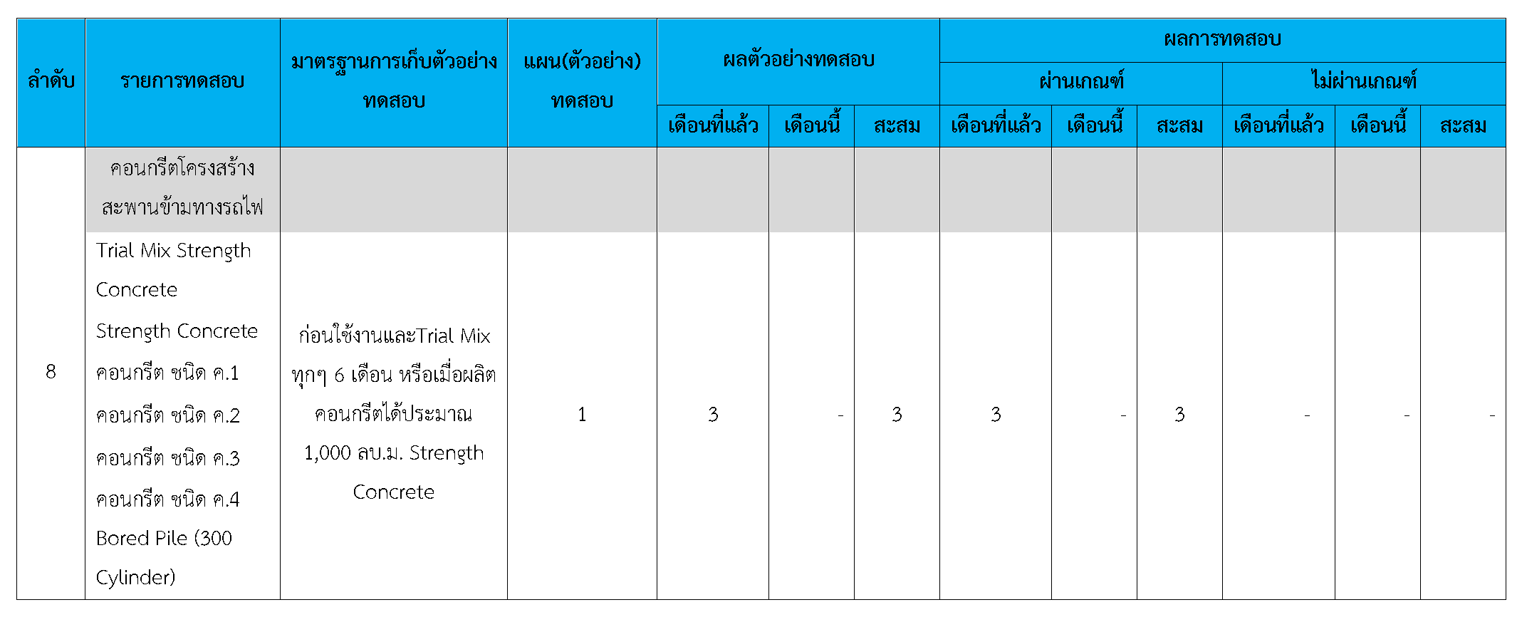 ในระหว่างวันที่ 1-30 เมษายน 2561 ผู้ว่าจ้างได้เสนอหนังสือขออนุมัติใช้วัสดุถึงที่ปรึกษา โดยที่ปรึกษาได้ตรวจสอบวัสดุดังกล่าวมีผลทดสอบดังตาราง
