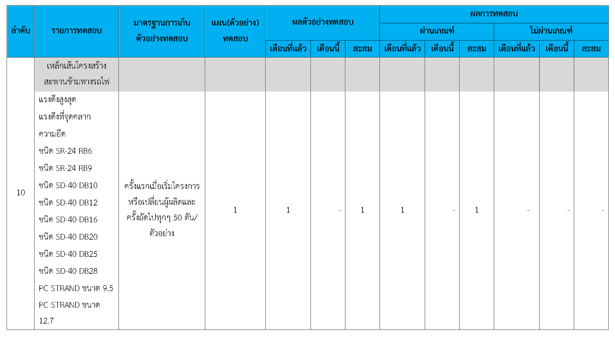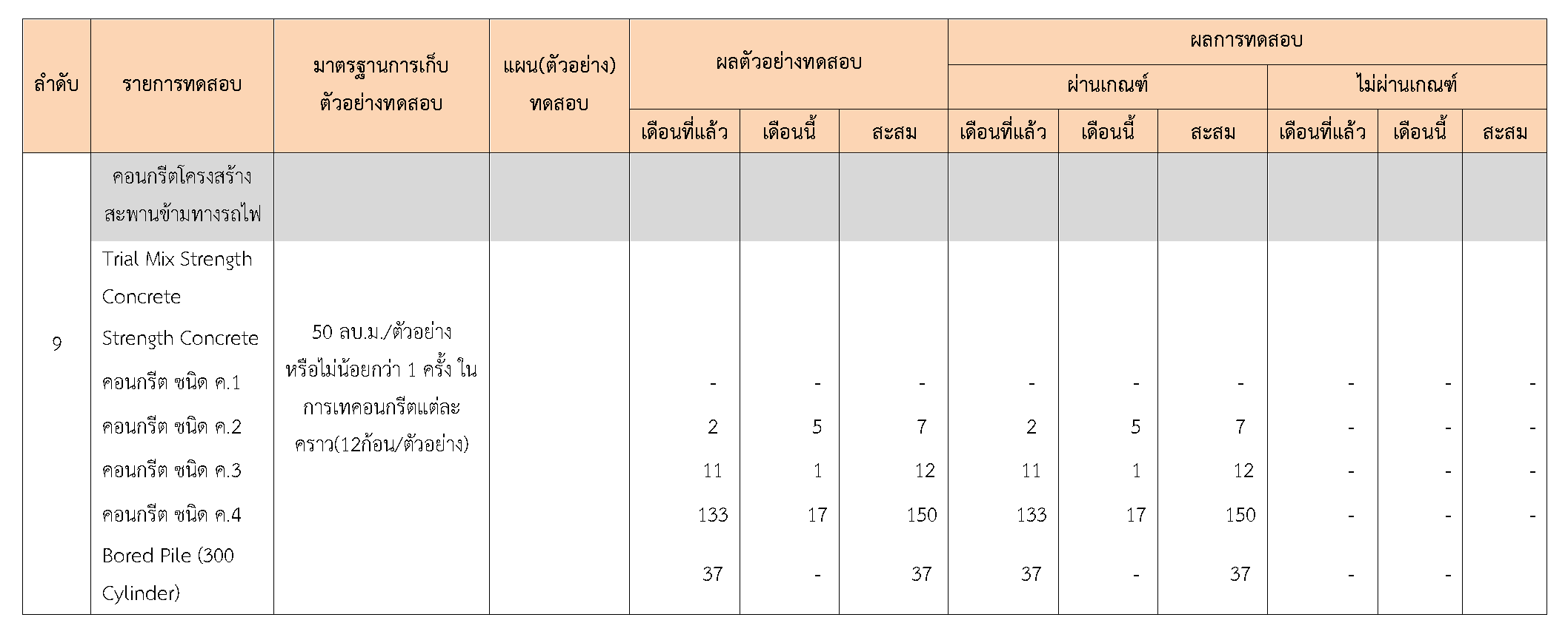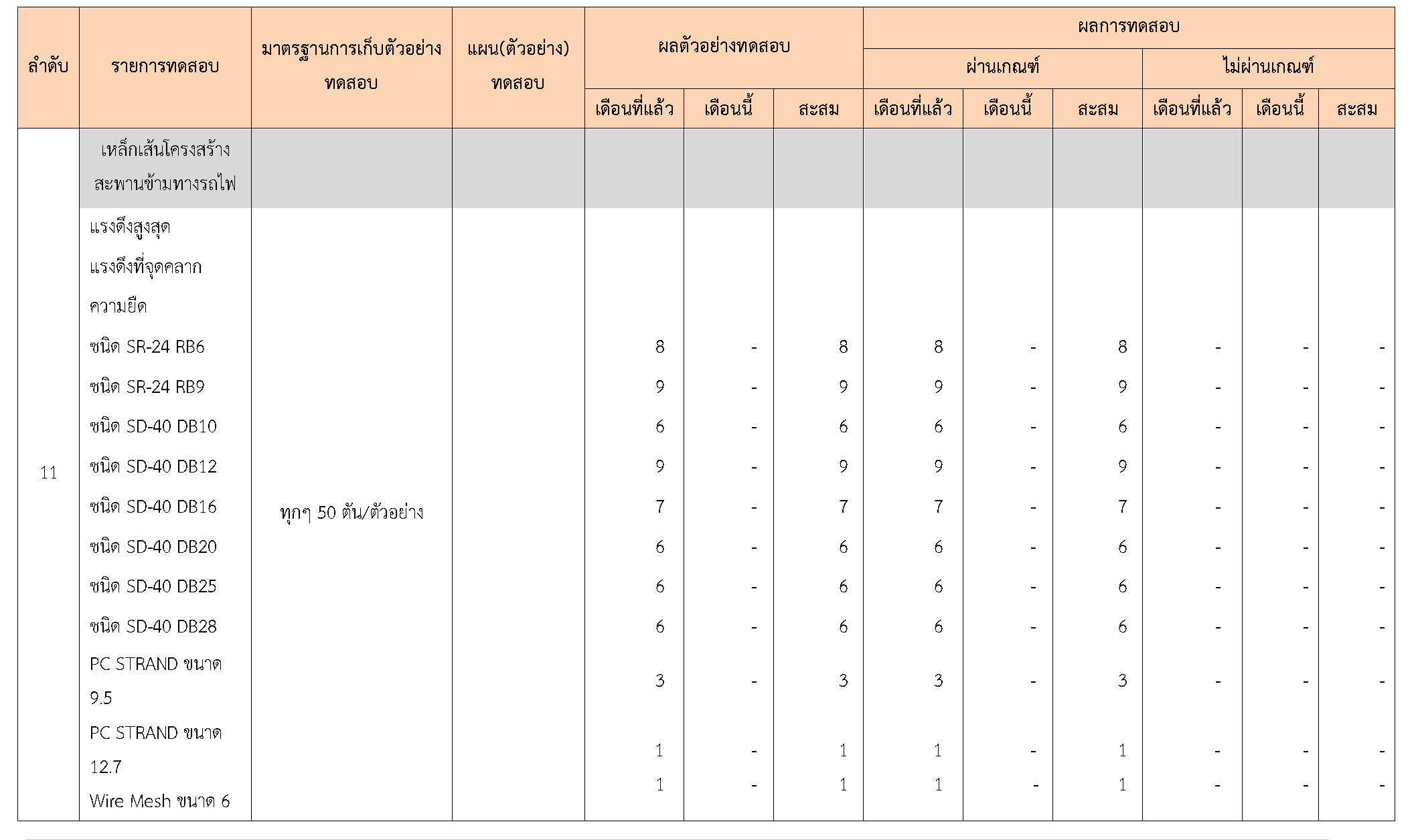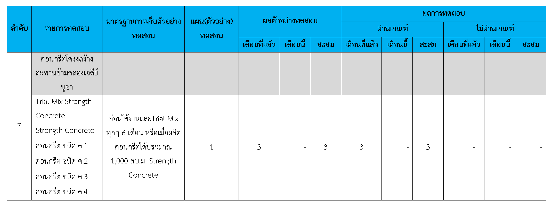 ในระหว่างวันที่ 1-30 เมษายน 2561 ผู้ว่าจ้างได้เสนอหนังสือขออนุมัติใช้วัสดุถึงที่ปรึกษา โดยที่ปรึกษาได้ตรวจสอบวัสดุดังกล่าวมีผลทดสอบดังตาราง