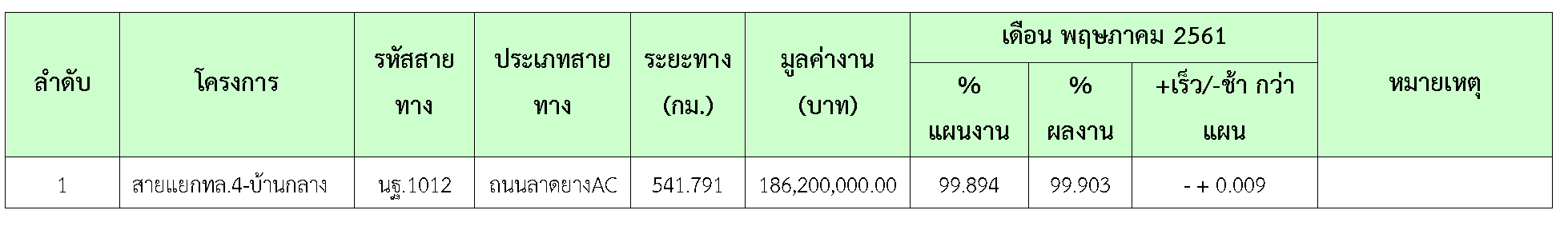 ในช่วงเดือนพฤษภาคม 2561 ที่ผ่านมาผู้รับจ้างดำเนินงานต่างๆ ที่มีรายละเอียดของงานหลักๆดังนี