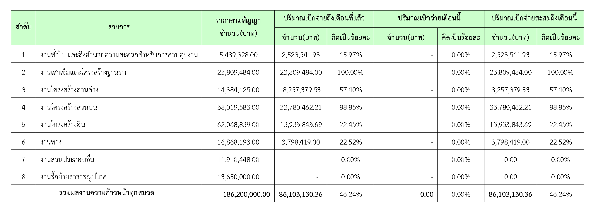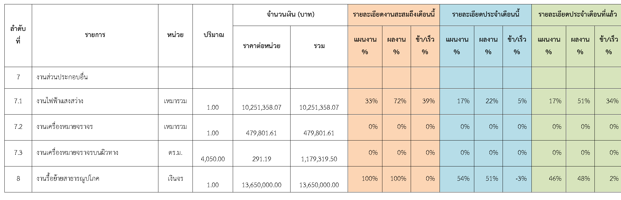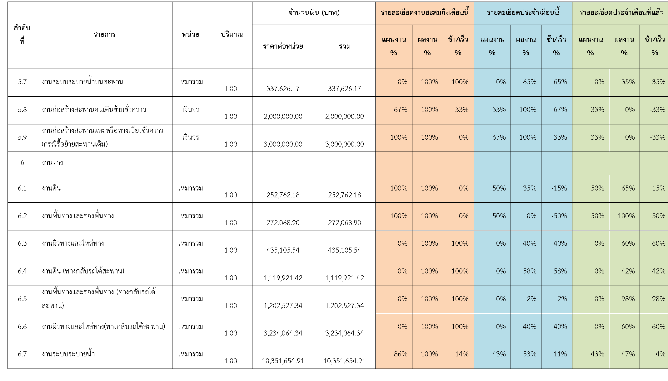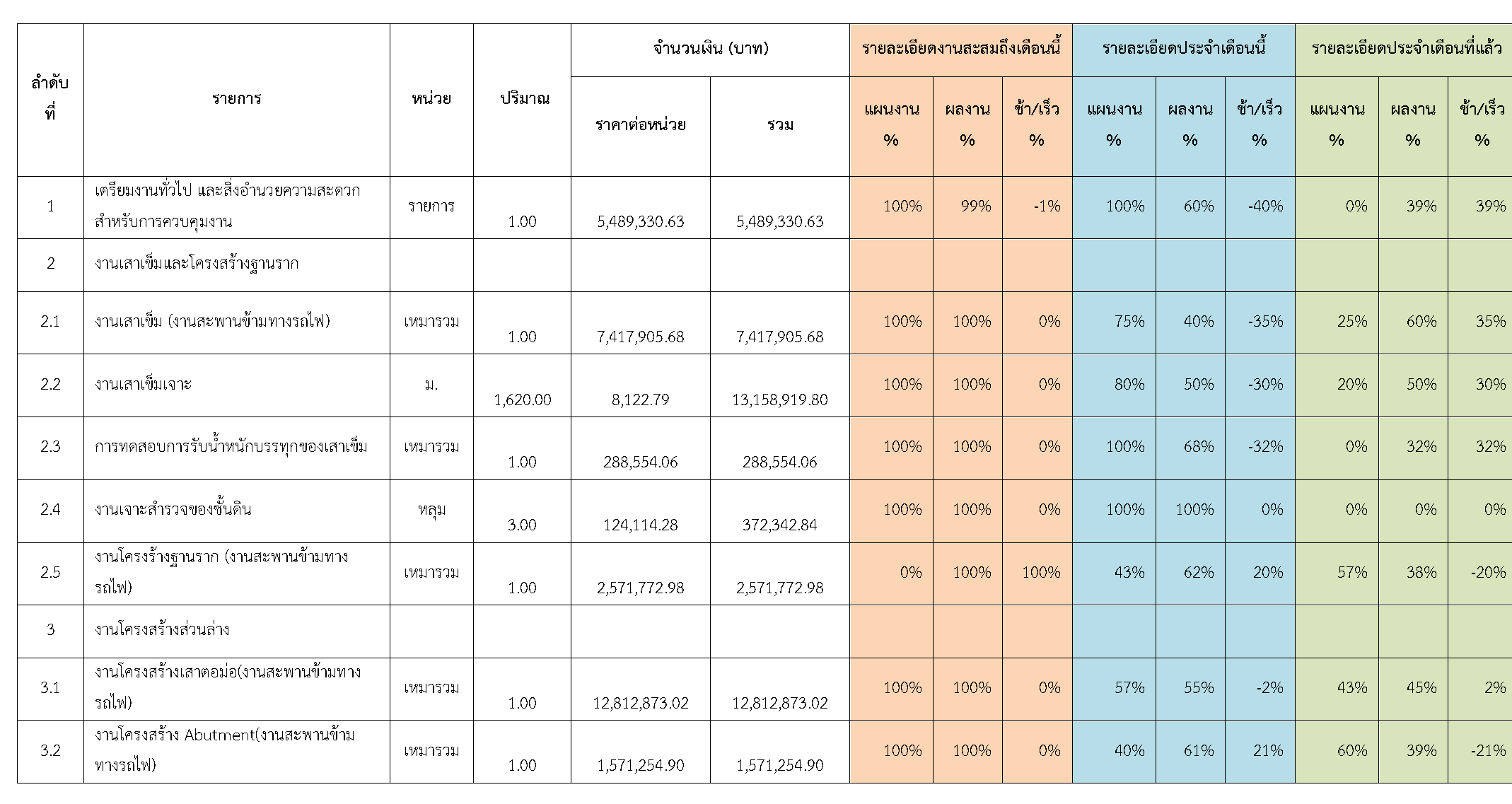 2.2 ความก้าวหน้าของงานก่อสร้างแยกตามรายการ