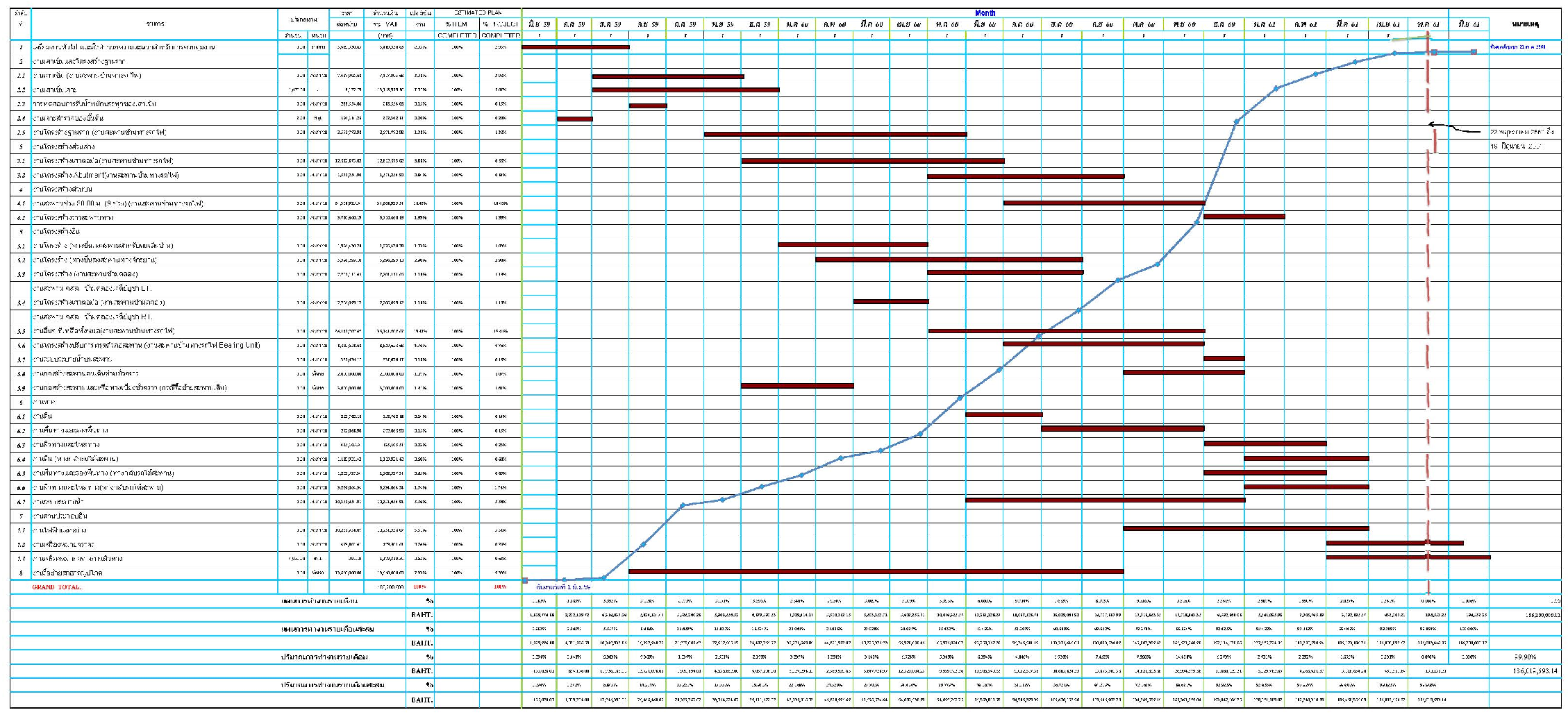 ที่ปรึกษาได้ติดตามความก้าวหน้าของงาน และนำมาจัดทำเป็น S-CURVE เปรียบเทียบกันระหว่างแผนงานและผลงานก่อสร้าง ดังรูปที่ 2.2-1