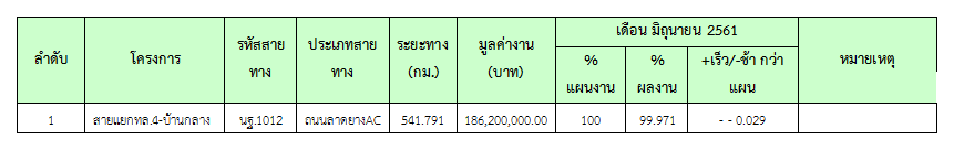 คณะกรรมการตรวจการจ้าง ดำเนินการตรวจรับงานในเดือน มิถุนายน 2561 ดังสรุปในตารางที่ 2.5-1 – 2.5-4