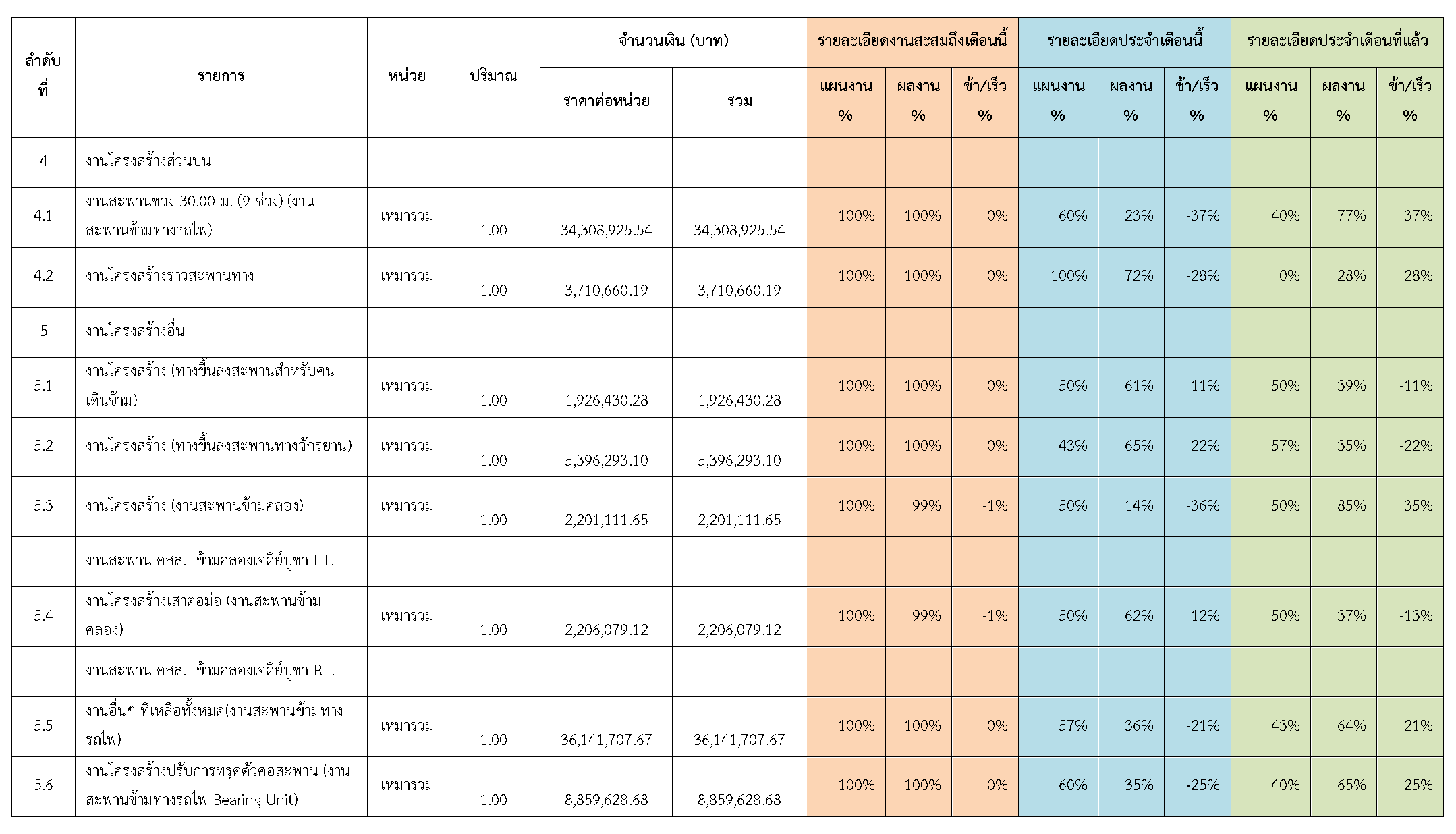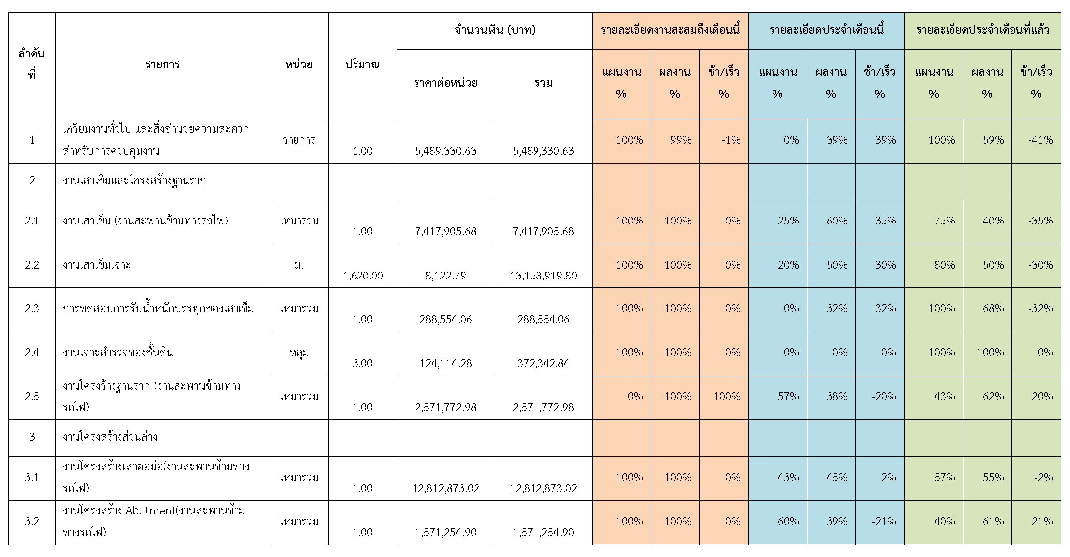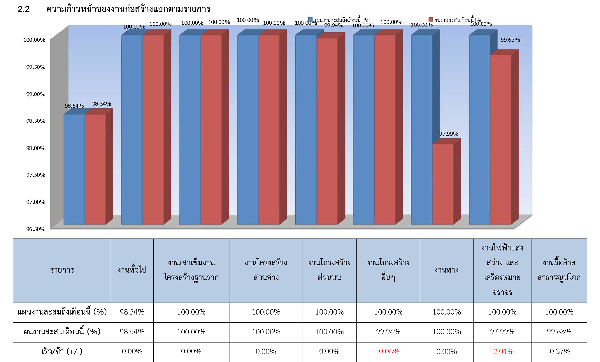 ตารางที่ 2.1-1 สรุปผลงานความก้าวหน้าของงานก่อสร้าง