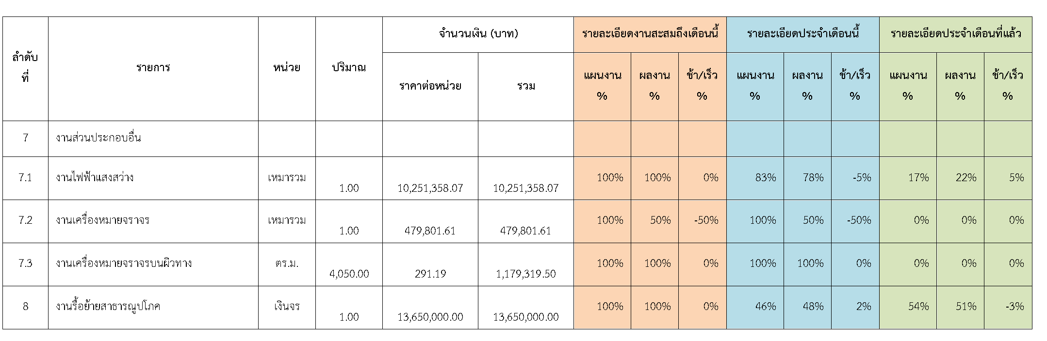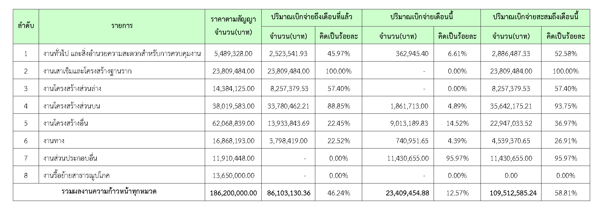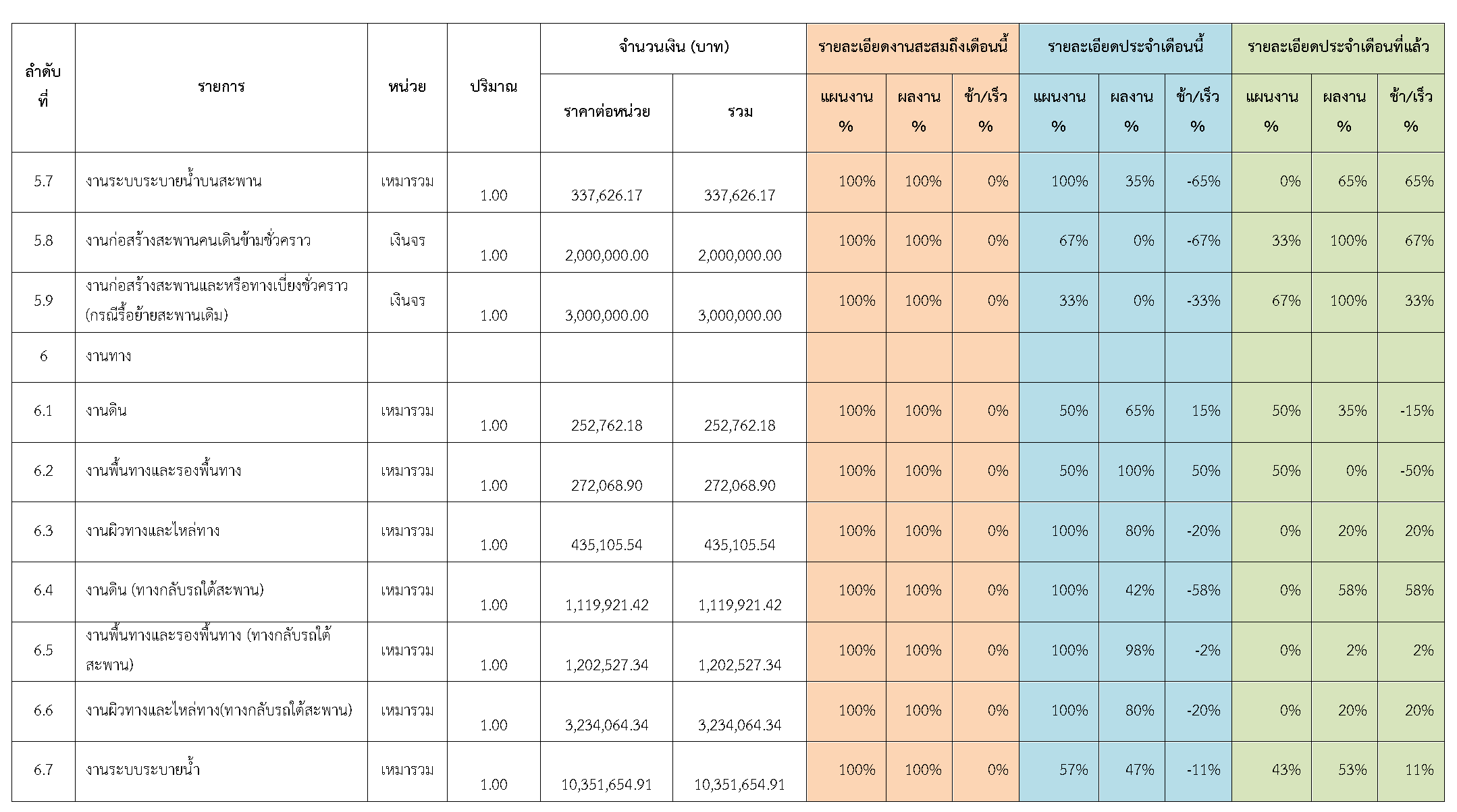 ตารางที่ 2.1-1 สรุปผลงานความก้าวหน้าของงานก่อสร้าง