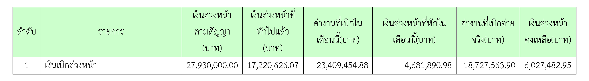 ตารางที่ 2.5-2 สรุปการเบิก - จ่ายเงิน ถึงครั้งที่ 7