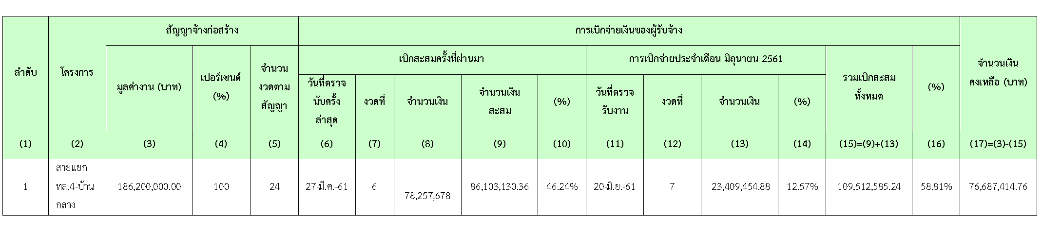 ในช่วงเดือนมิถุนายน 2561 ที่ผ่านมาผู้รับจ้างดำเนินงานต่างๆ ที่มีรายละเอียดของงานหลักๆดังนี้