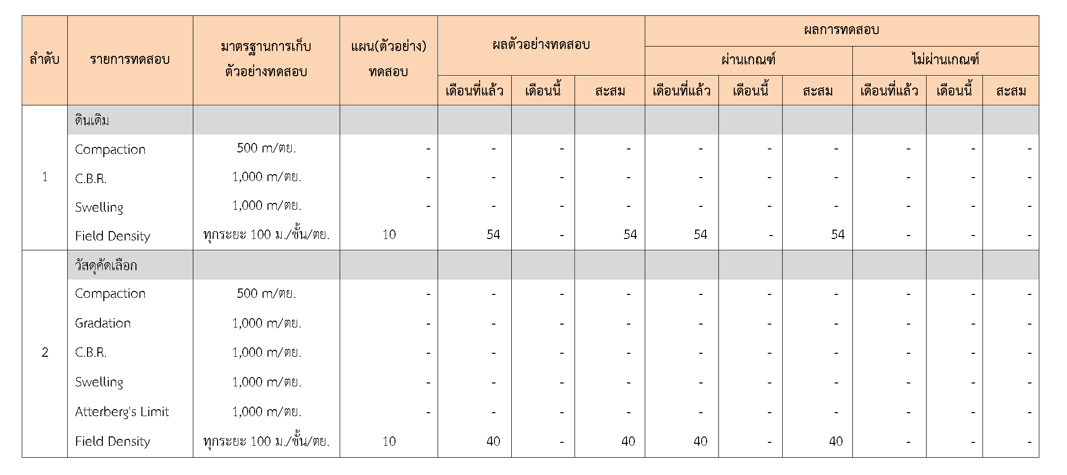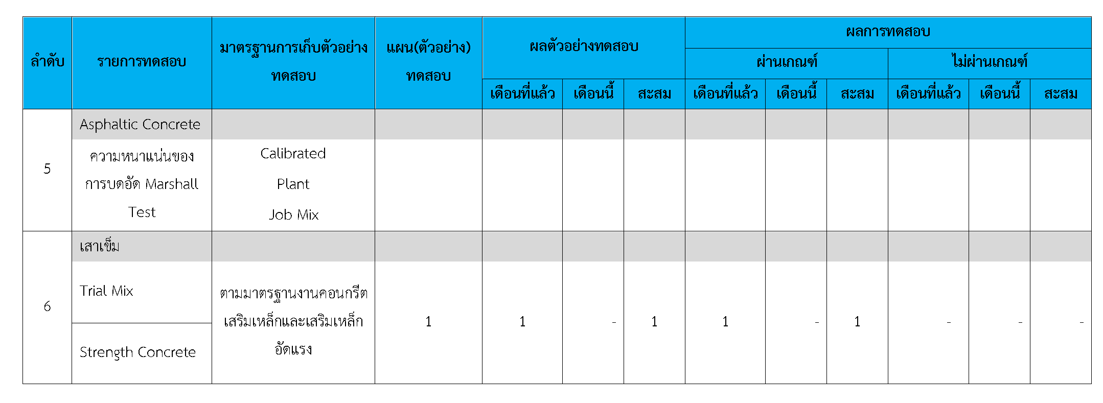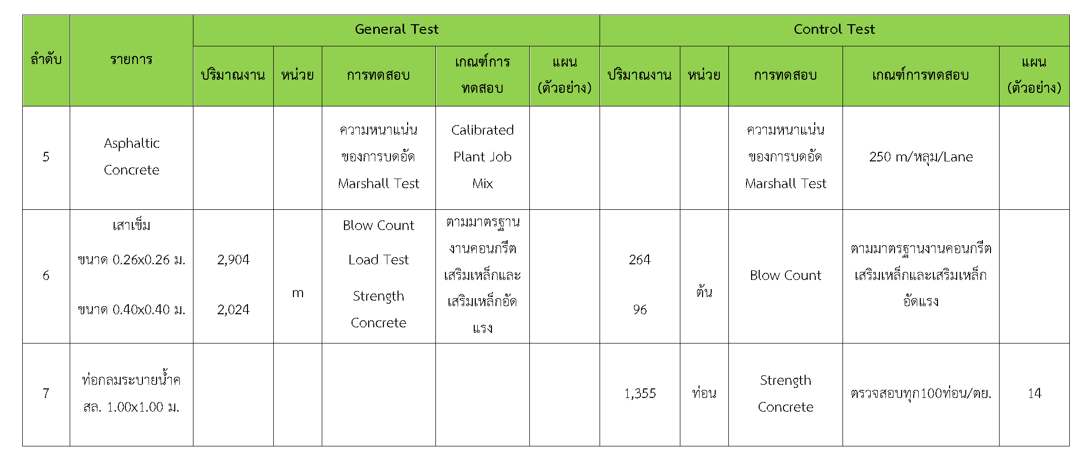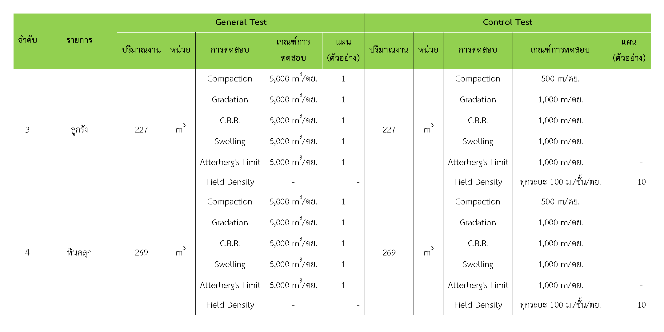 ในระหว่างวันที่ 1-30 มิถุนายน 2561 ผู้ว่าจ้างได้เสนอหนังสือขออนุมัติใช้วัสดุถึงที่ปรึกษา โดยที่ปรึกษาได้ตรวจสอบวัสดุดังกล่าวมีผลทดสอบดังตาราง