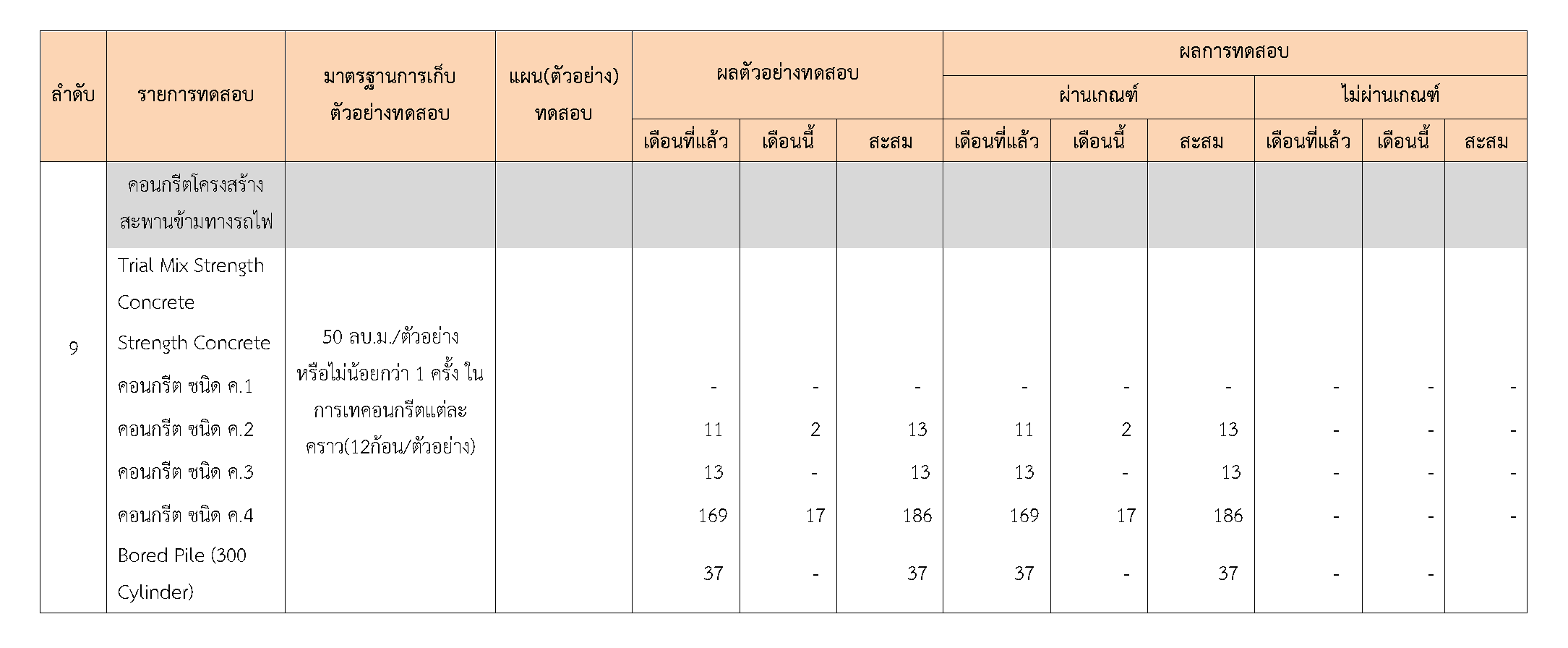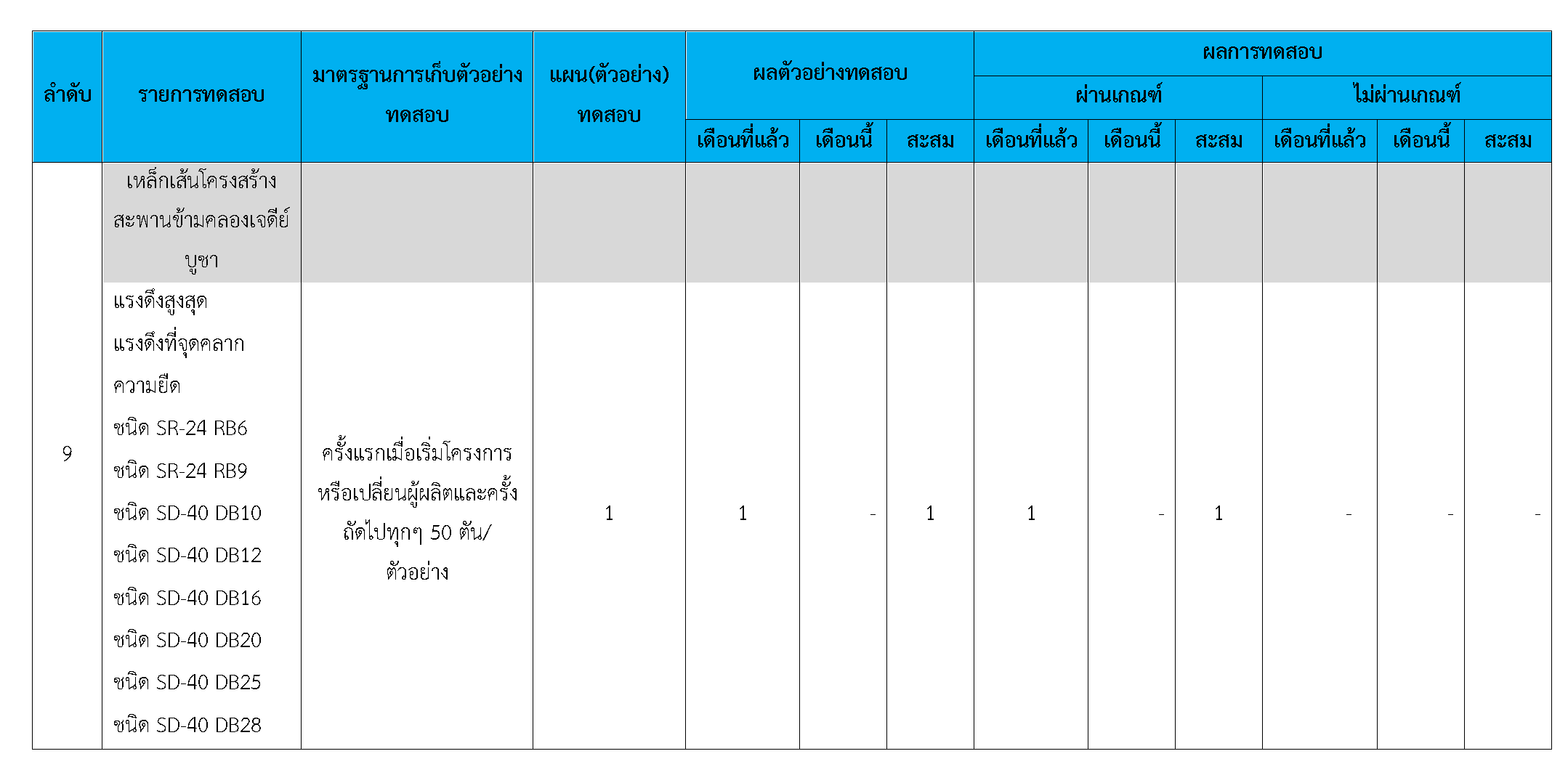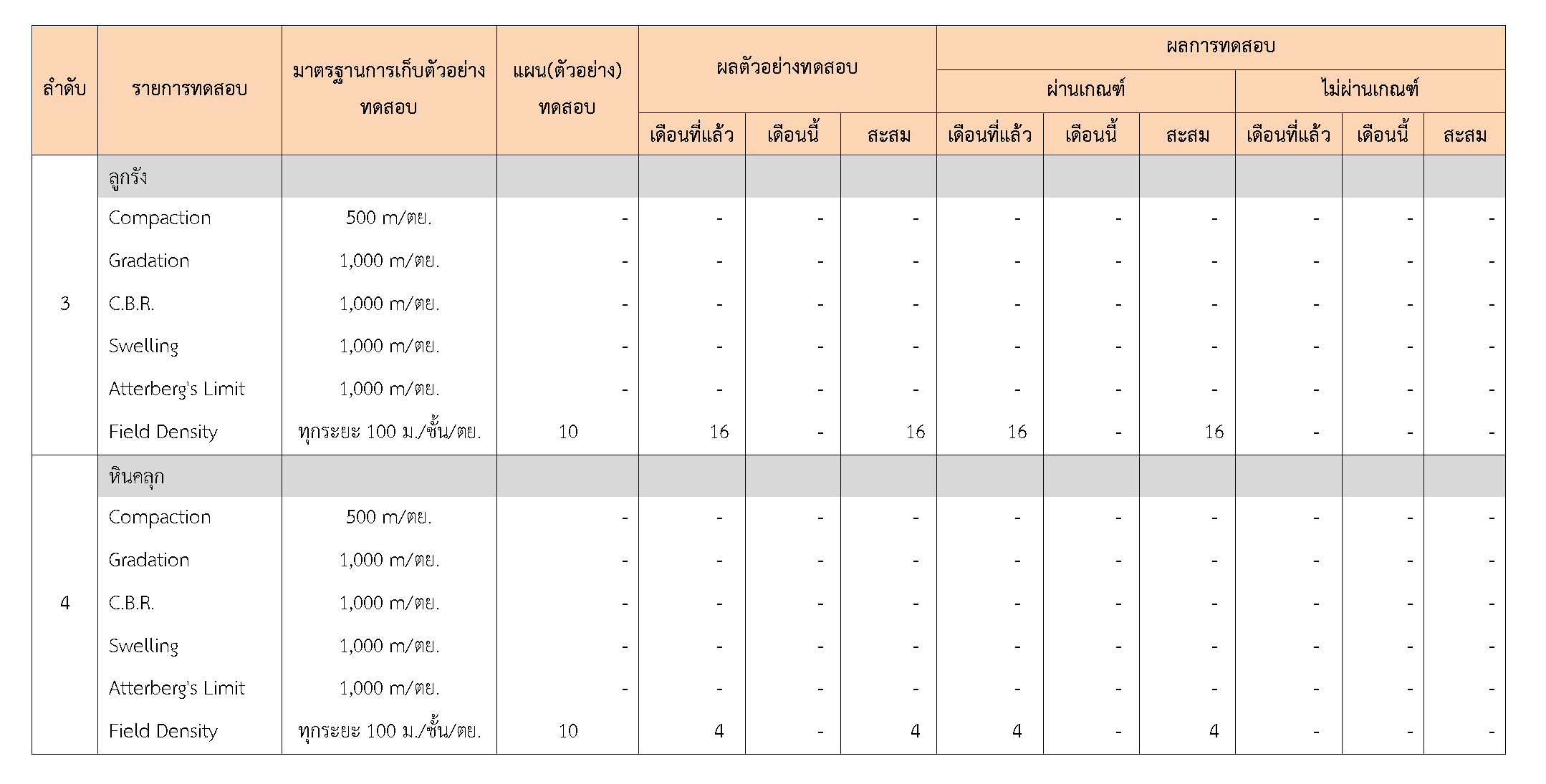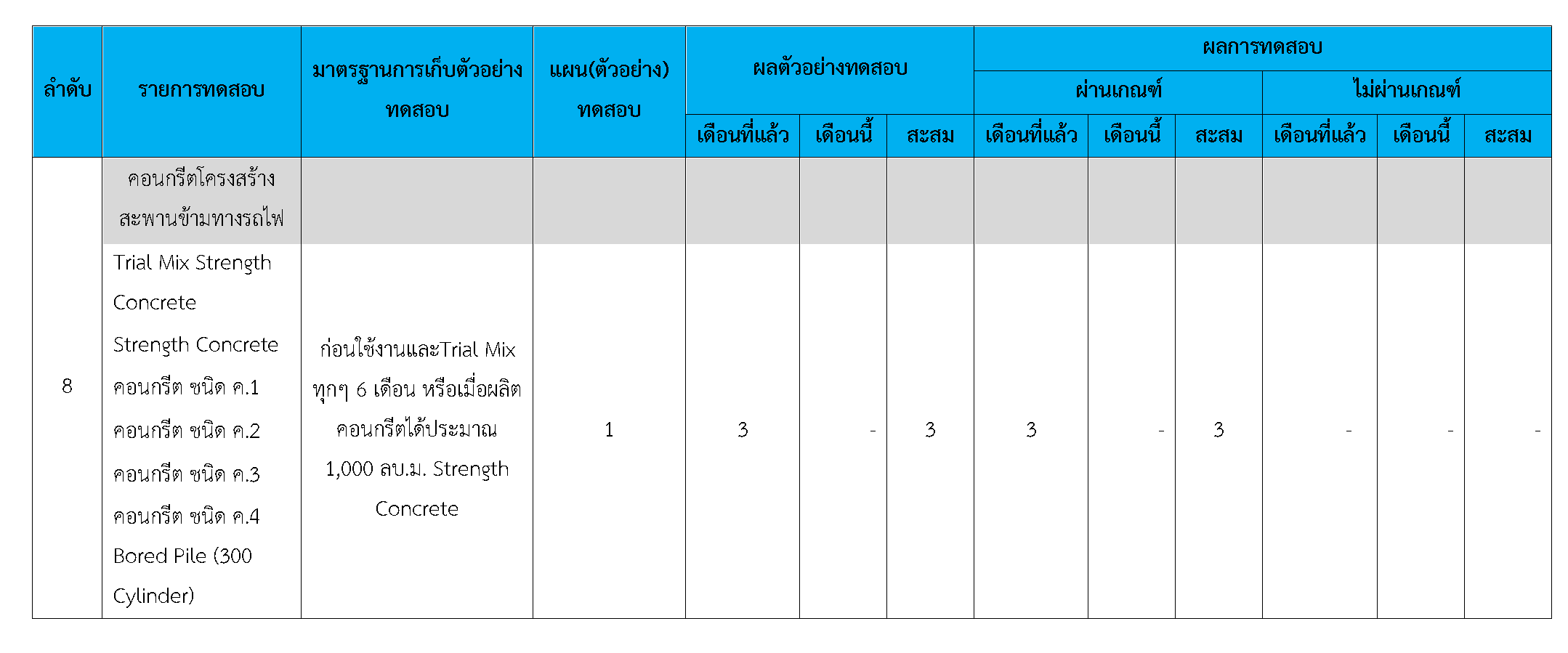 ในระหว่างวันที่ 1-30 มิถุนายน 2561 ผู้ว่าจ้างได้เสนอหนังสือขออนุมัติใช้วัสดุถึงที่ปรึกษา โดยที่ปรึกษาได้ตรวจสอบวัสดุดังกล่าวมีผลทดสอบดังตาราง
