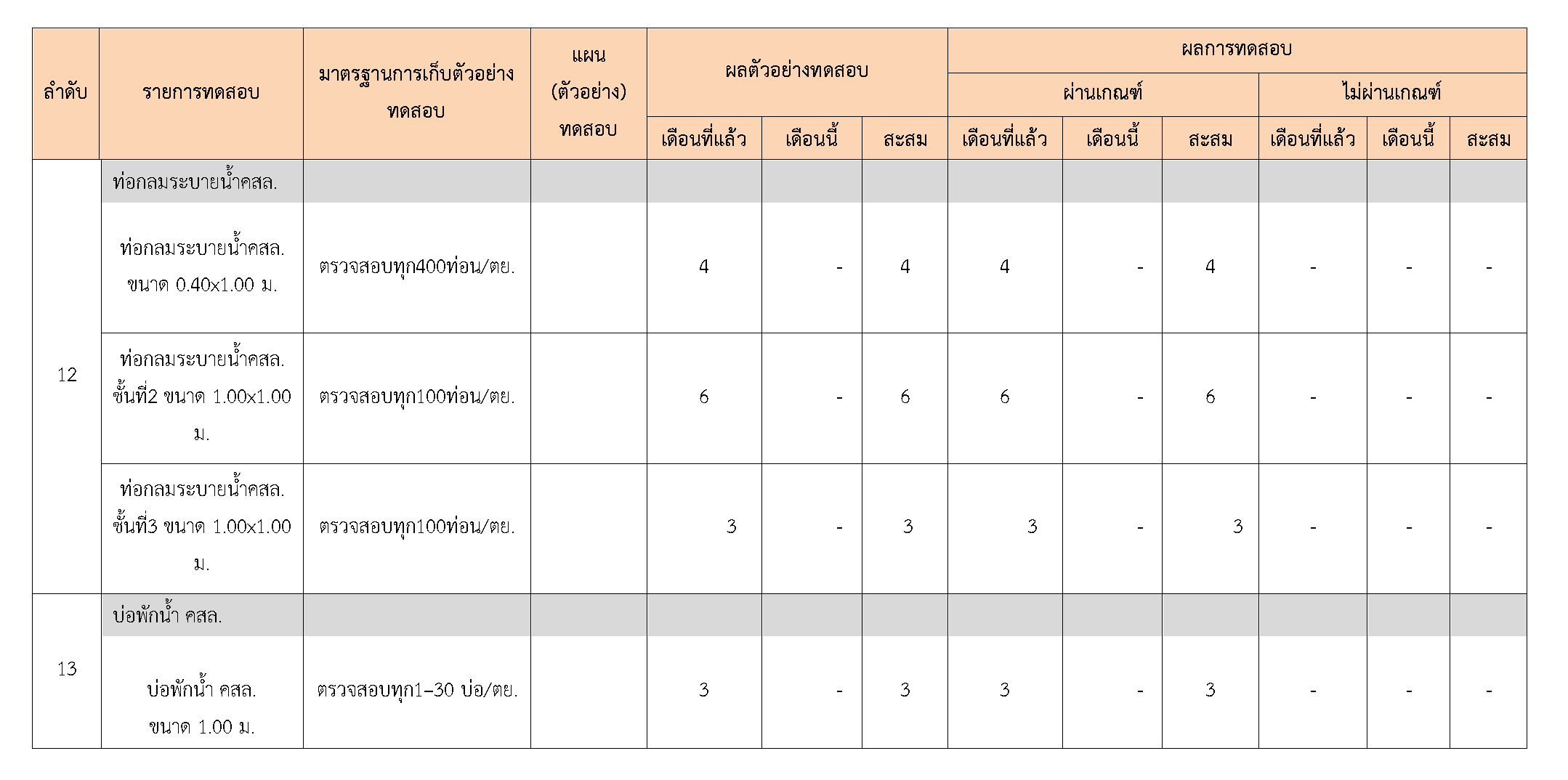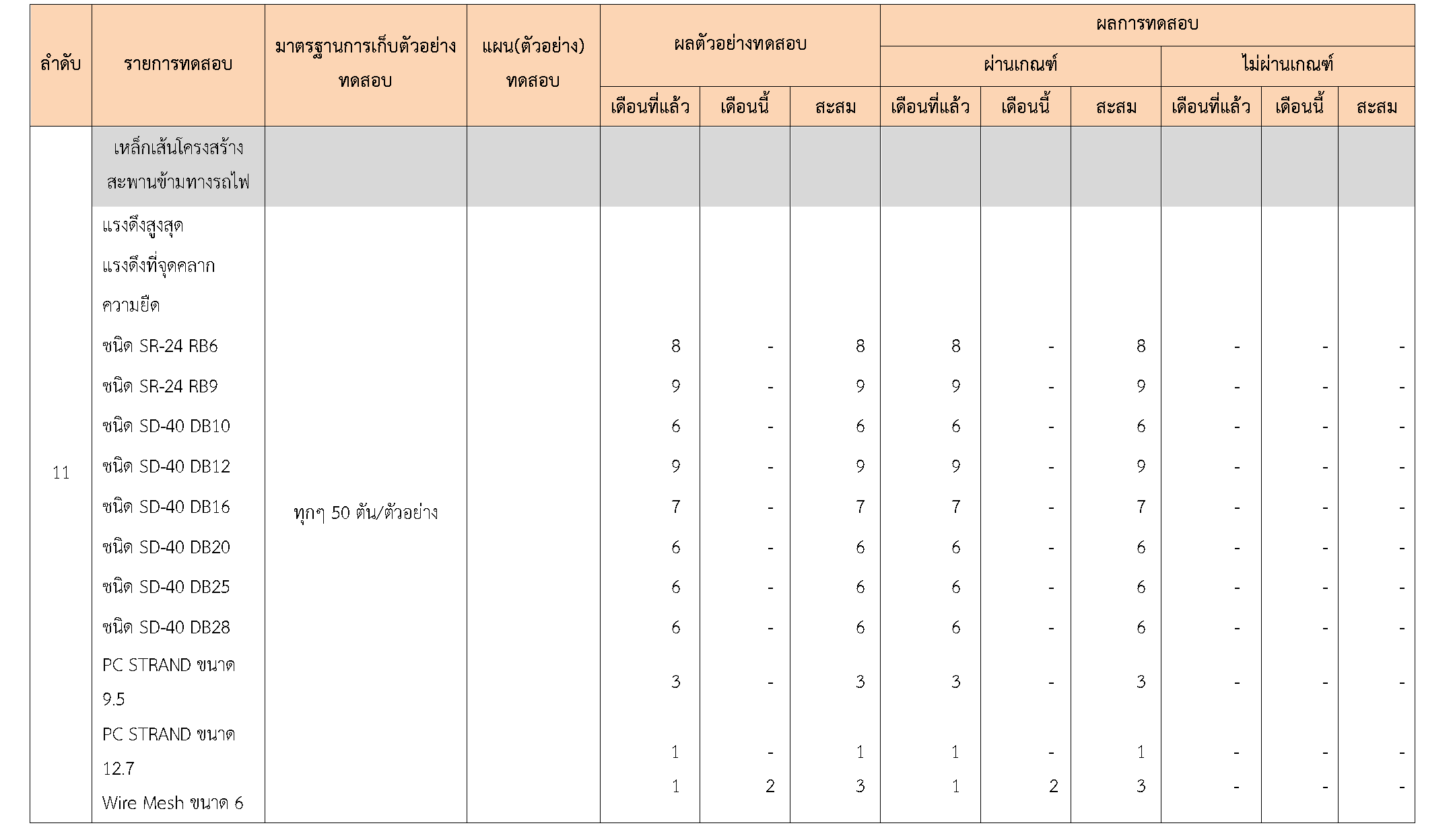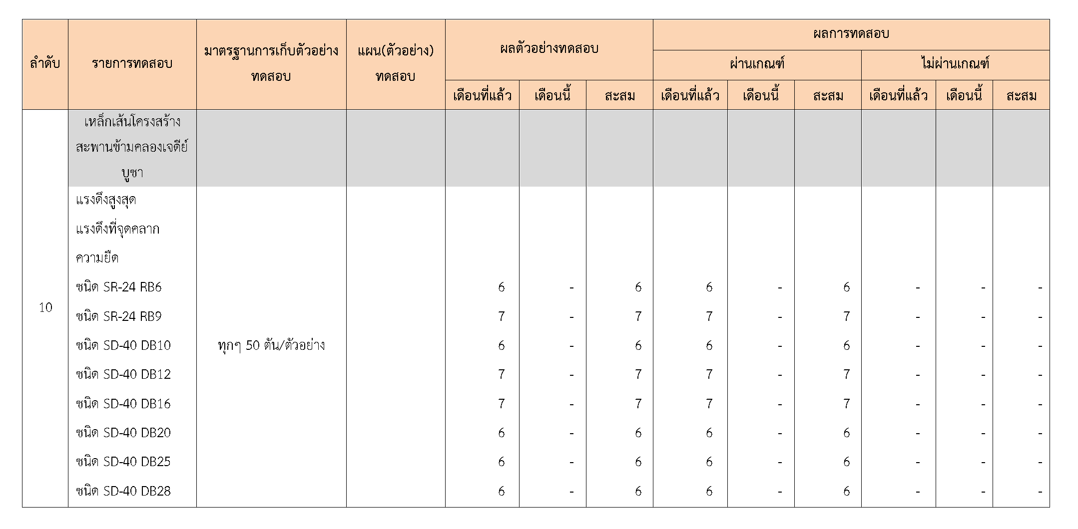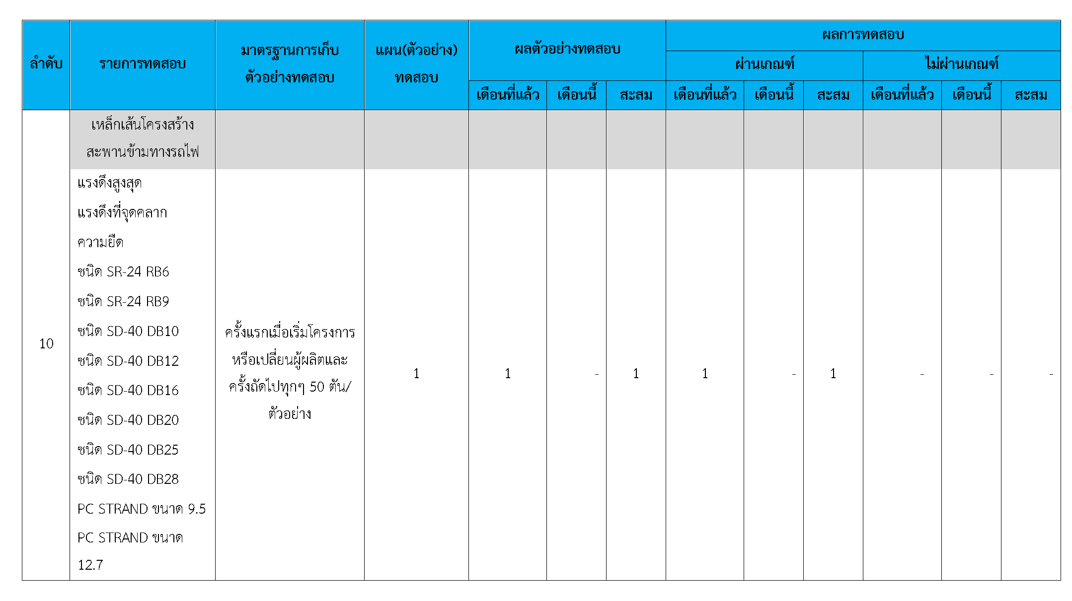 ในระหว่างวันที่ 1-30 มิถุนายน 2561 ผู้ว่าจ้างได้เสนอหนังสือขออนุมัติใช้วัสดุถึงที่ปรึกษา โดยที่ปรึกษาได้ตรวจสอบวัสดุดังกล่าวมีผลทดสอบดังตาราง