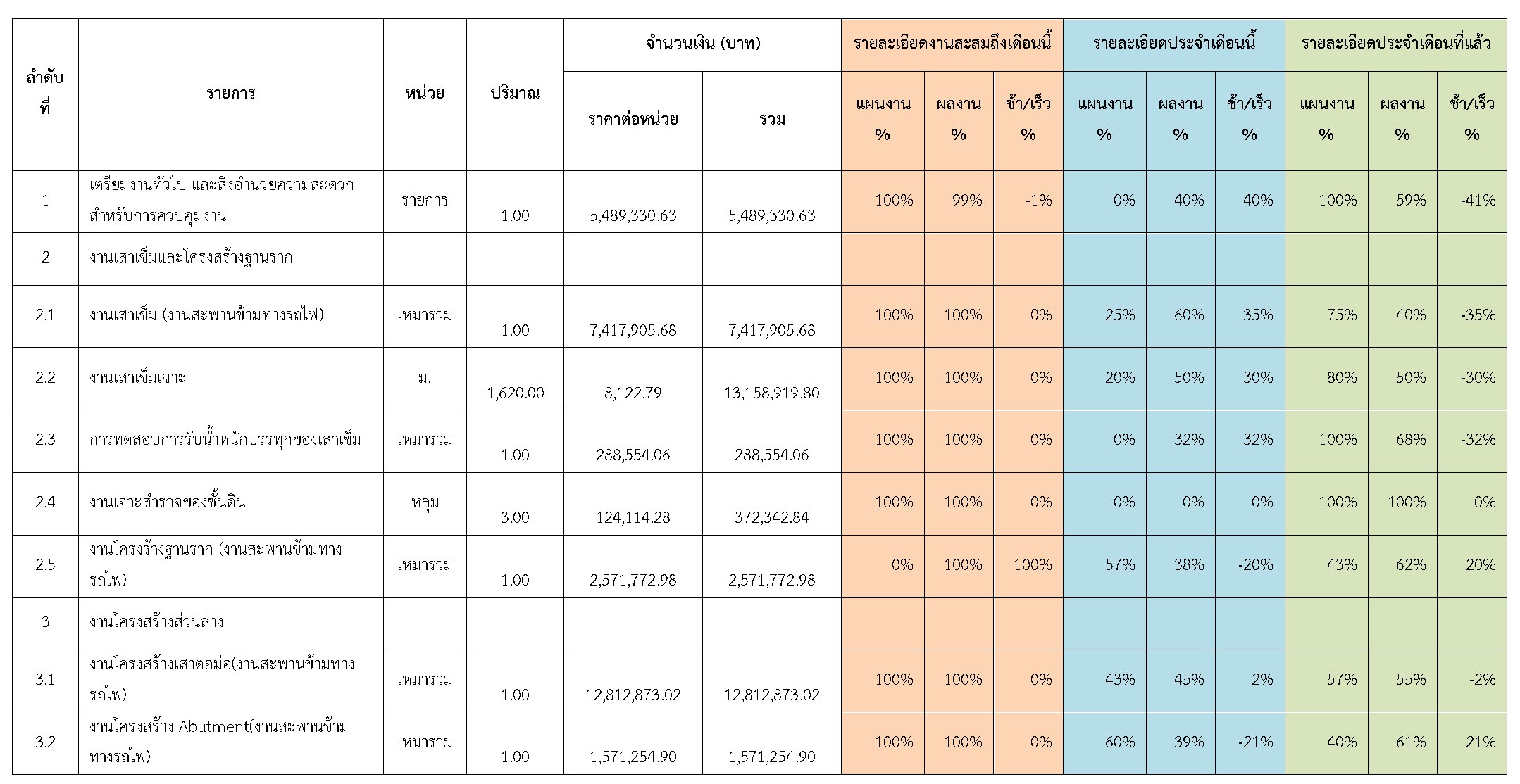 2.4 รายละเอียดของความก้าวหน้าในสายทาง