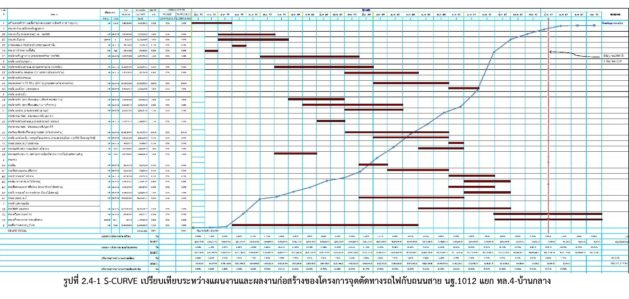 ที่ปรึกษาได้ติดตามความก้าวหน้าของงาน และนำมาจัดทำเป็น S-CURVE เปรียบเทียบกันระหว่างแผนงานและผลงานก่อสร้าง ดังรูปที่ 2.2-1