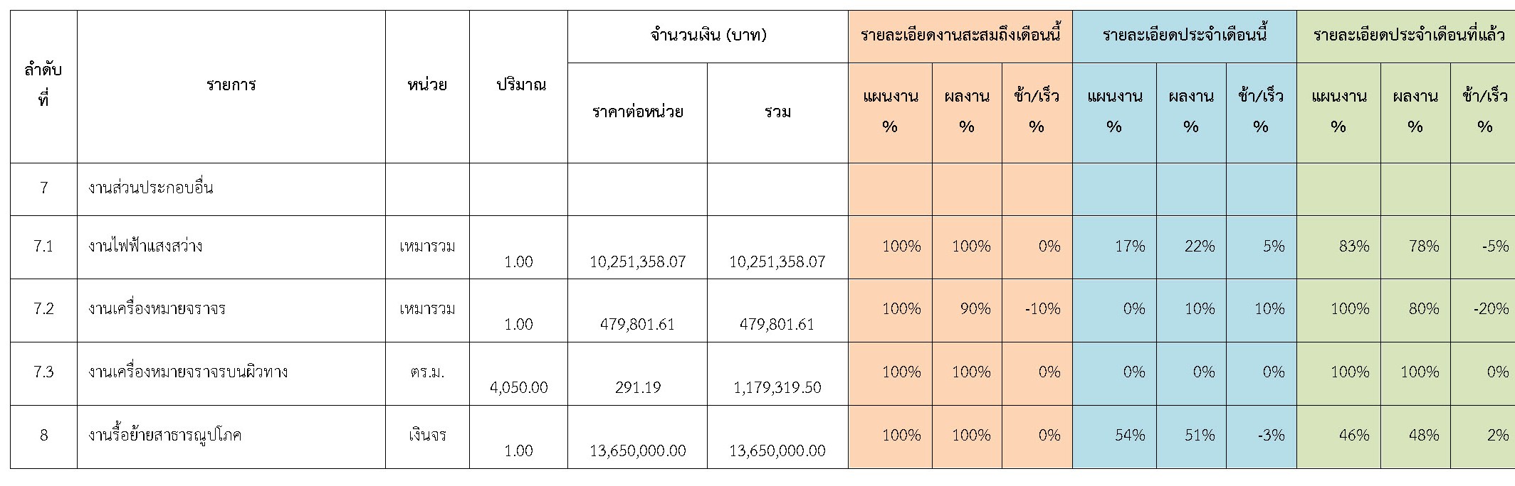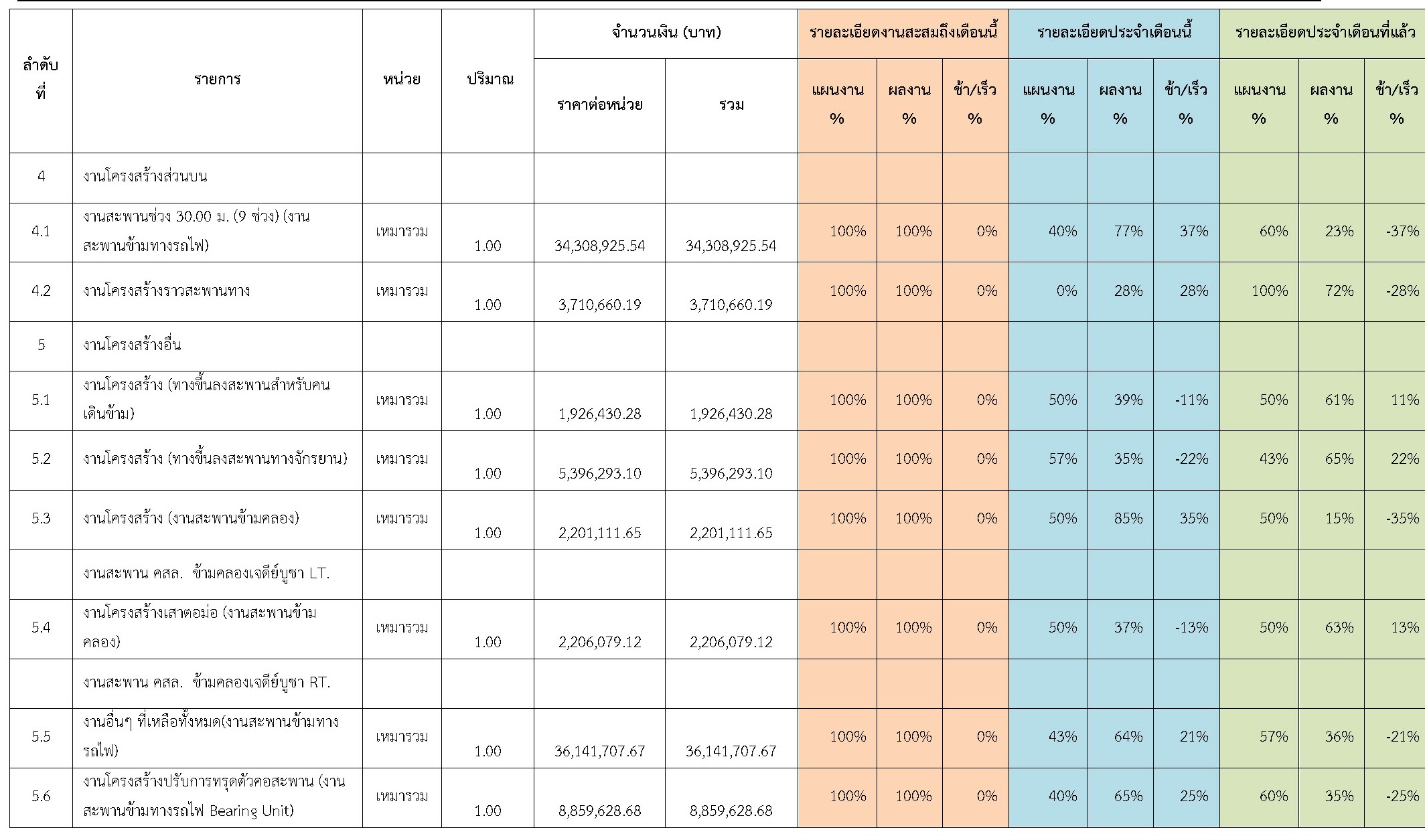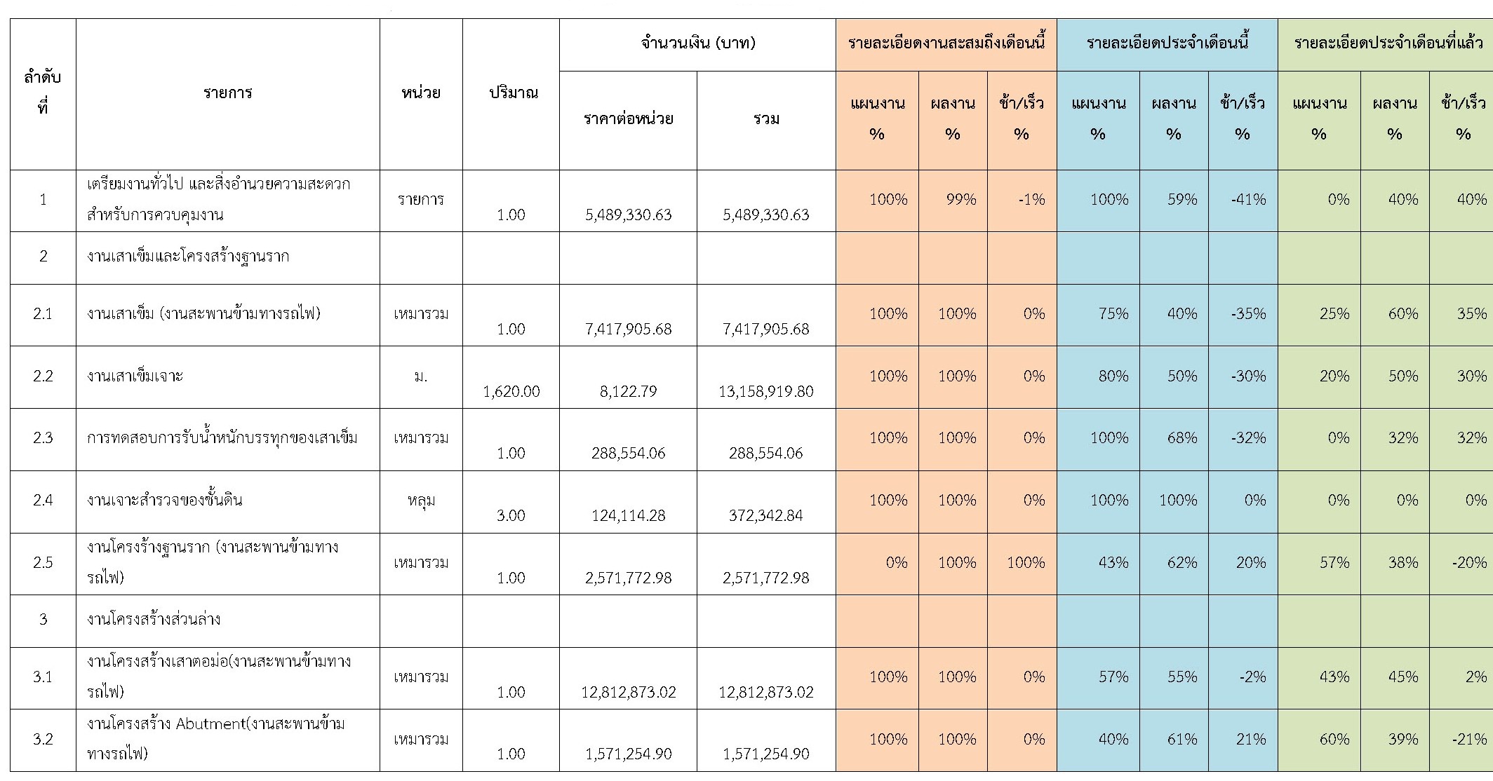 ตารางที่ 2.1-1 สรุปผลงานความก้าวหน้าของงานก่อสร้าง