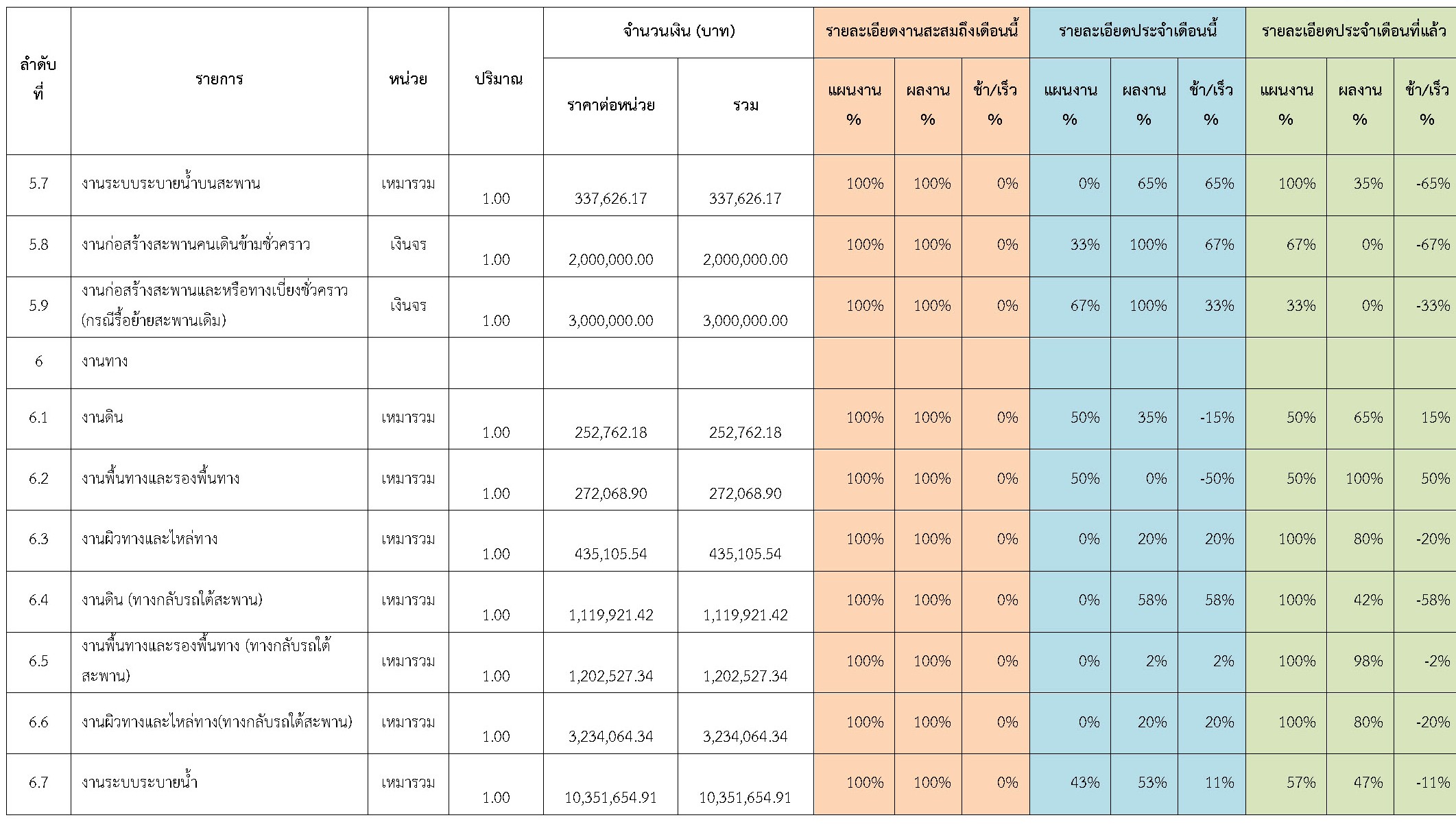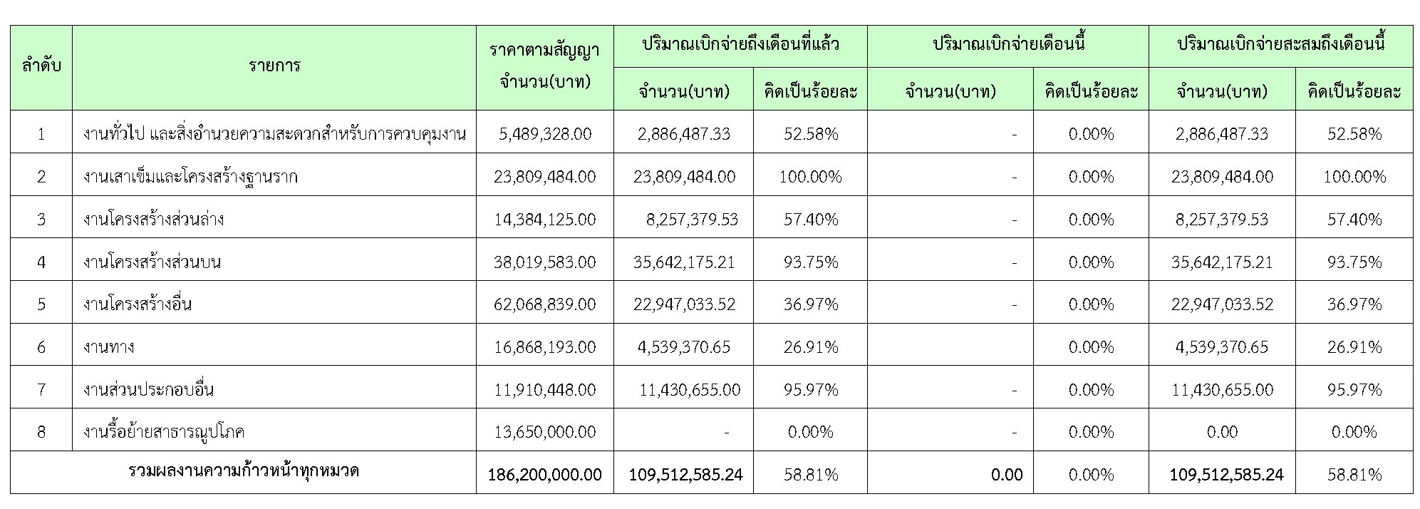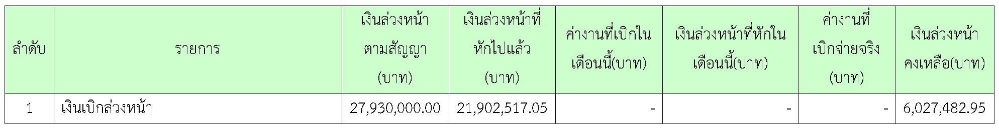 ตารางที่ 2.1-1 สรุปผลงานความก้าวหน้าของงานก่อสร้าง
