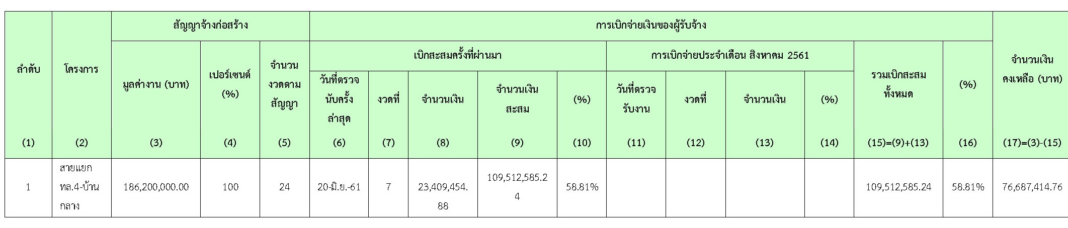 ในช่วงเดือนสิงหาคม 2561 ที่ผ่านมาผู้รับจ้างดำเนินงานต่างๆ ที่มีรายละเอียดของงานหลักๆดังนี้