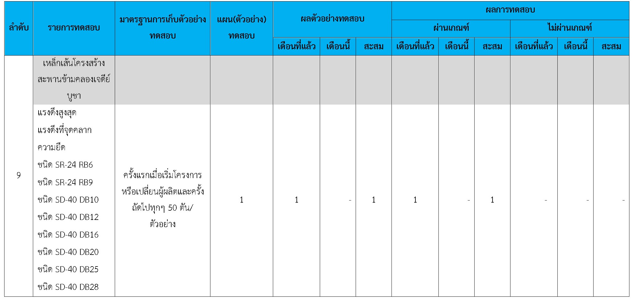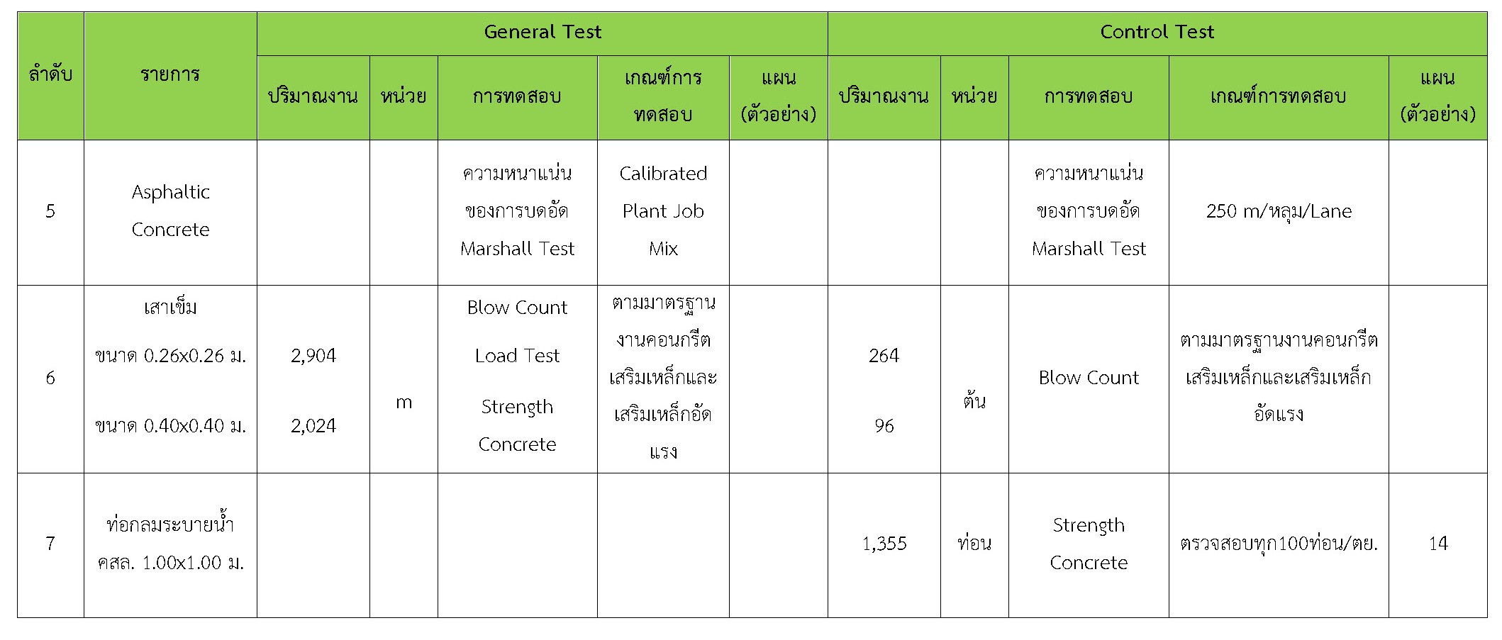 ในระหว่างวันที่ 1-30 กันยายน 2561 ผู้ว่าจ้างได้เสนอหนังสือขออนุมัติใช้วัสดุถึงที่ปรึกษา โดยที่ปรึกษาได้ตรวจสอบวัสดุดังกล่าวมีผลทดสอบดังตาราง