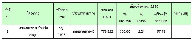 ในการดำเนินงานควบคุมงานก่อสร้าง ได้มีการจัดส่งเอกสารหนังสือต่างๆ ระหว่างกรมทางหลวงชนบท ที่ปรึกษา และผู้รับจ้างดังนี้