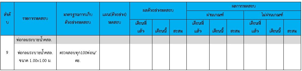 ในเดือน พฤศจิกายน 2562 ได้แสดงเกณฑ์การทดสอบGeneral Test และ Control Test แสดงไว้ในตารางที่ 3.2-1 – 3.2-3 ดังนี้