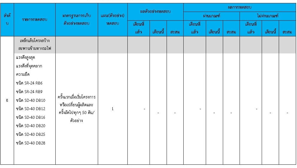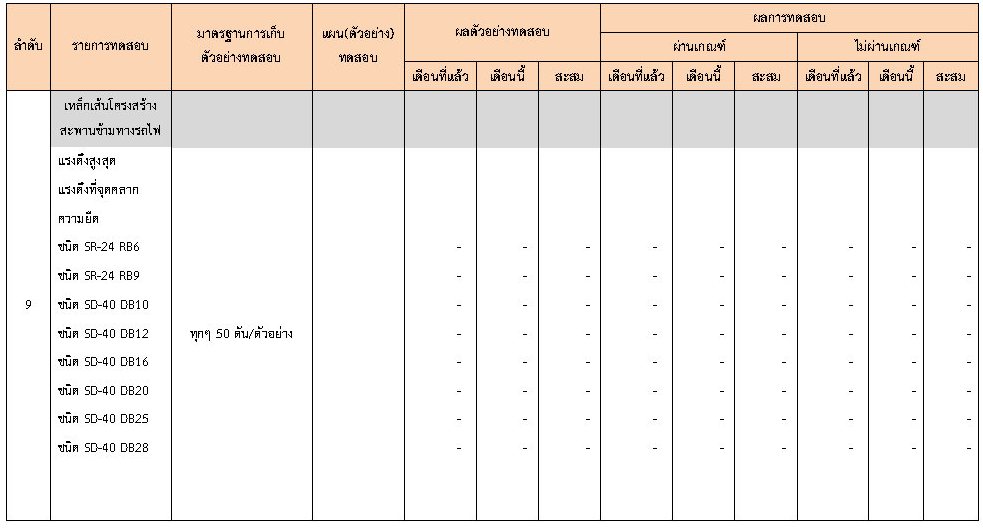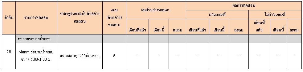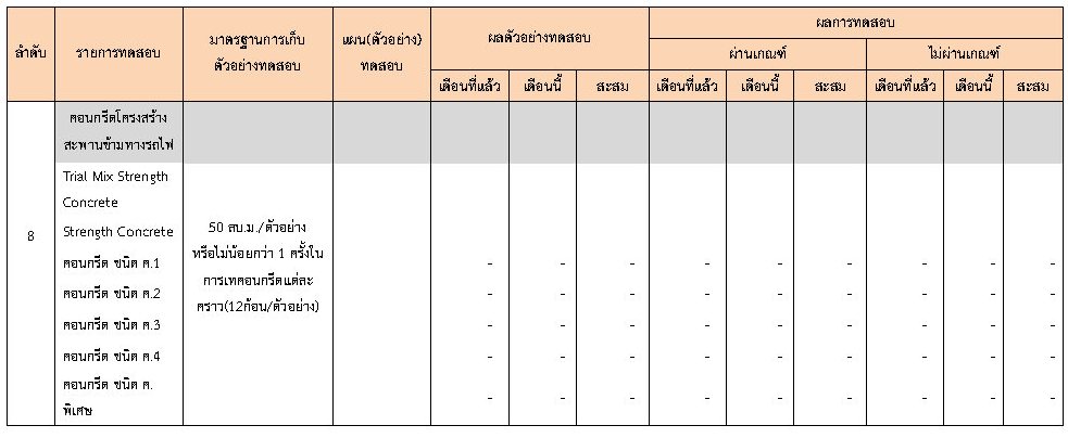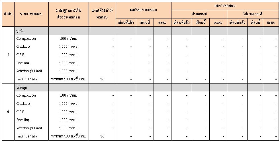 ในระหว่างวันที่ 1-30 พฤศจิกายน 2562 ผู้ว่าจ้างได้เสนอหนังสือขออนุมัติใช้วัสดุถึงที่ปรึกษา โดยที่ปรึกษาได้ตรวจสอบวัสดุดังกล่าวมีผลทดสอบดังตาราง