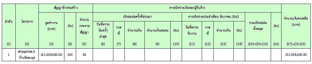 ในเดือน ธันวาคม 2562 มีความก้าวหน้าของงานก่อสร้าง แต่ไม่มีการตรวจรับงานใดๆ ดังสรุปในตารางที่ 2.3-1