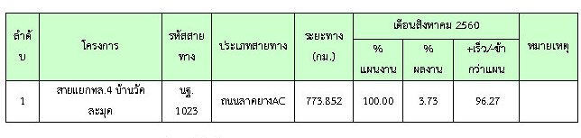 ในการดำเนินงานควบคุมงานก่อสร้าง ได้มีการจัดส่งเอกสารหนังสือต่างๆ ระหว่างกรมทางหลวงชนบท ที่ปรึกษา และผู้รับจ้างดังนี้
