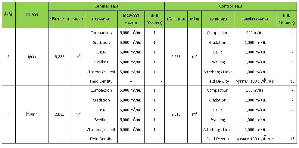 ในระหว่างวันที่ 1-31มกราคม 2563 ผู้ว่าจ้างได้เสนอหนังสือขออนุมัติใช้วัสดุถึงที่ปรึกษา โดยที่ปรึกษาได้ตรวจสอบวัสดุดังกล่าวมีผลทดสอบดังตาราง