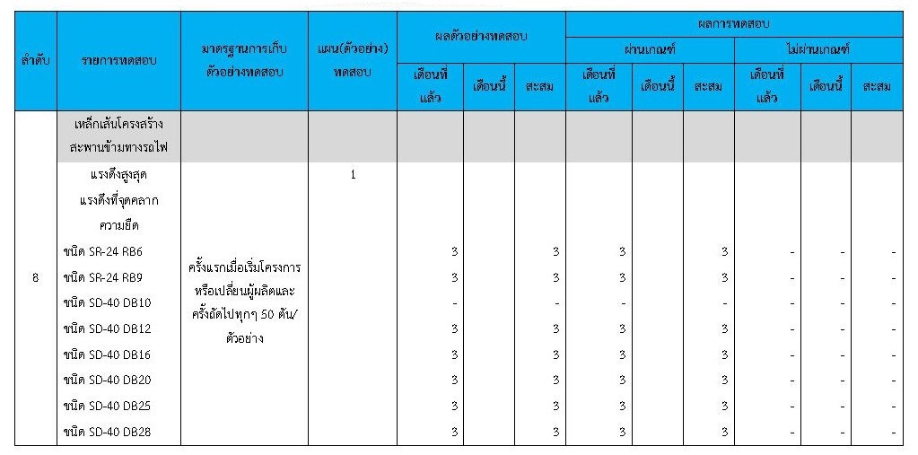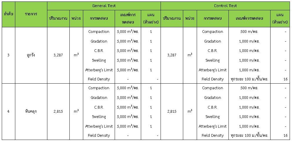 ในระหว่างวันที่ 1-29กุมภาพันธ์ 2563 ผู้ว่าจ้างได้เสนอหนังสือขออนุมัติใช้วัสดุถึงที่ปรึกษา โดยที่ปรึกษาได้ตรวจสอบวัสดุดังกล่าวมีผลทดสอบดังตาราง